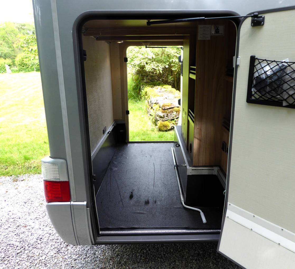 Huge garage, which opens both sides and fits everything needs for extensive travel away