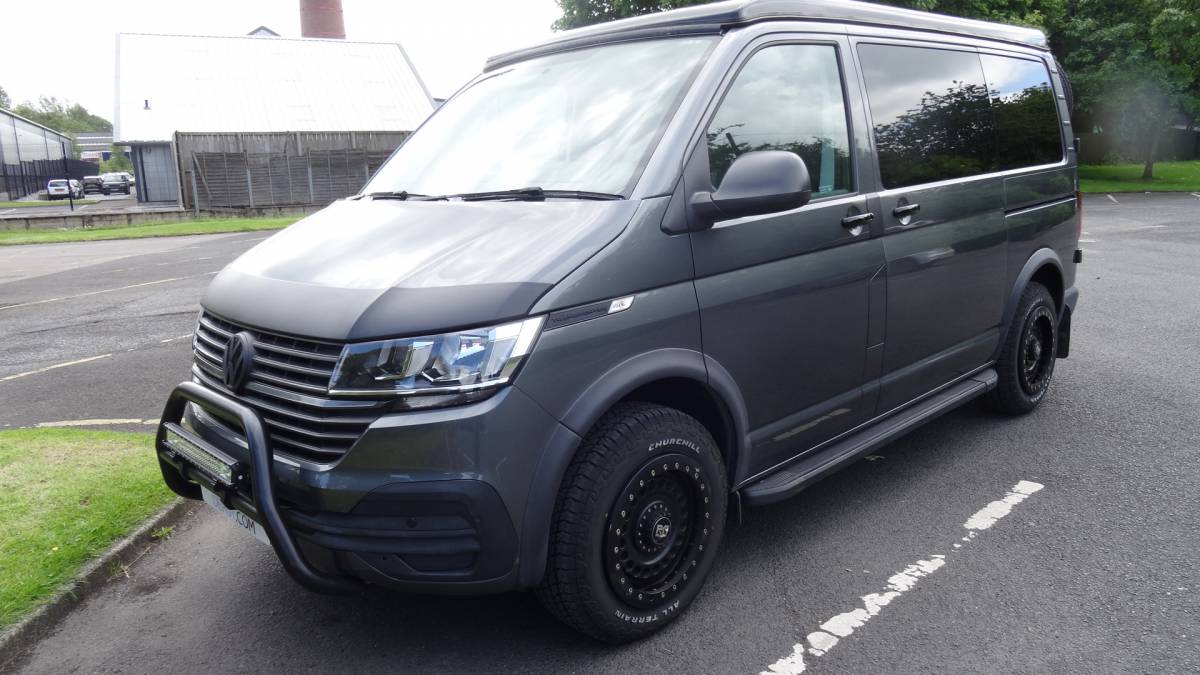 This fabulous van really has the ‘WOW’ factor. Finished in dark grey with off-road style wheels and tyres, an extra spare wheel, rear ladder and bull bar with powerful LED spotlight it really looks stunning.