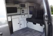 sink and fridge below with plenty of cupboard space. The rock and roll bed has two seatbelts. The