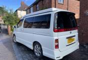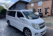Here we have a great Nissan Elgrand Campervan conversion professionally completed by GP campers in 2021. This great looking camper is Automatic and has the 2.5 V6 petrol engine, with only 57773 miles on the clock (92978 km) has a great service history since it was imported and was undersealed when it was converted. With a pop top roof, sink, hob and fridge/freezer, a ridiculously easy to use bed, a built in porta potti ,solar panel and webasto night heater this campervan has everything in it that you could possibly want.
