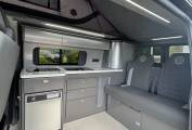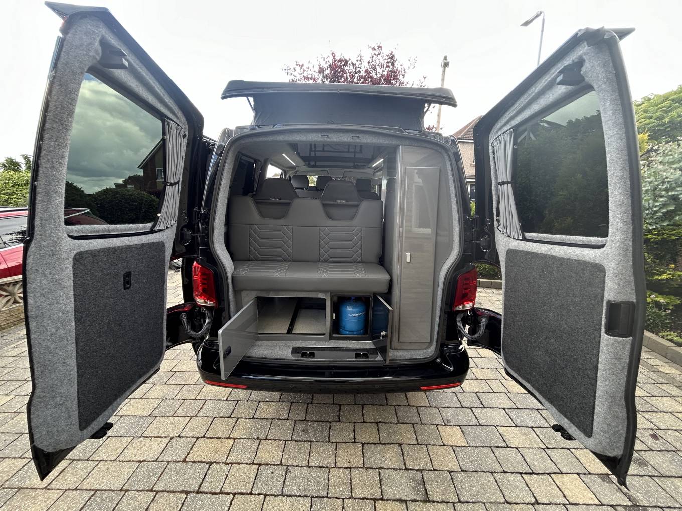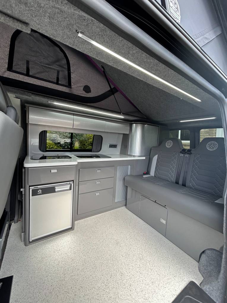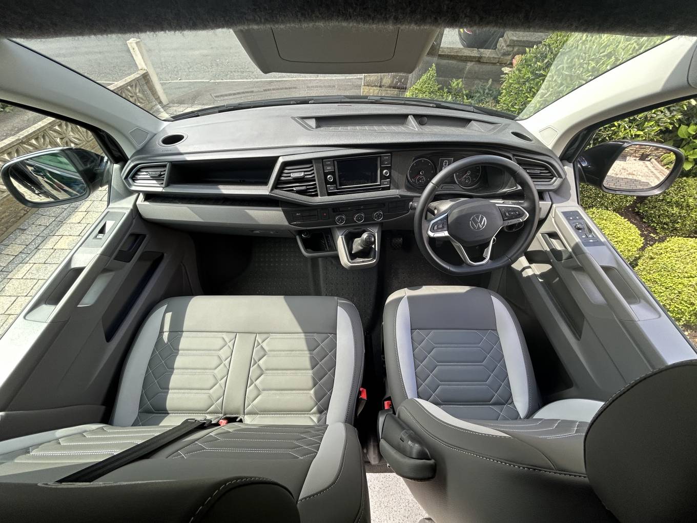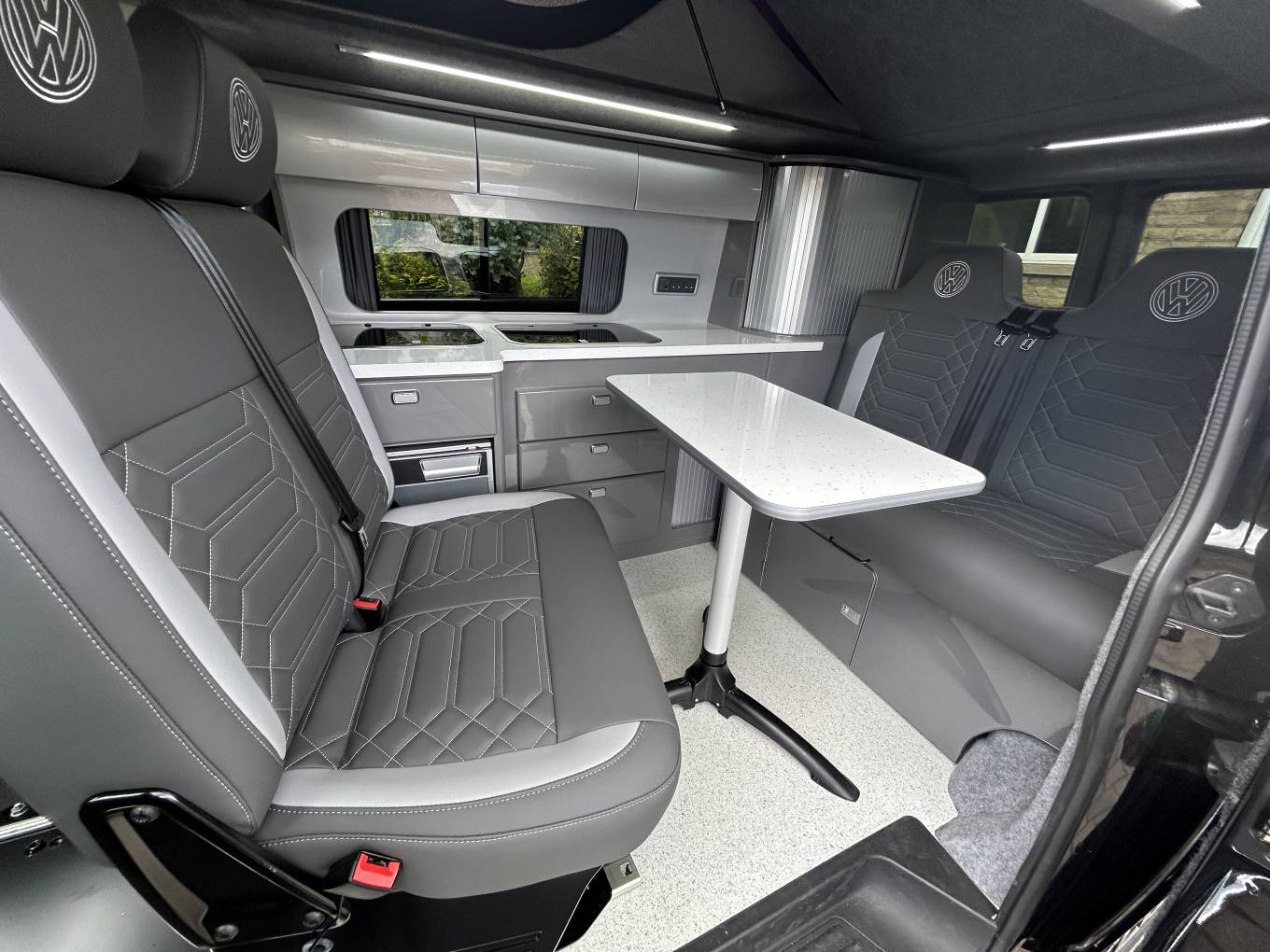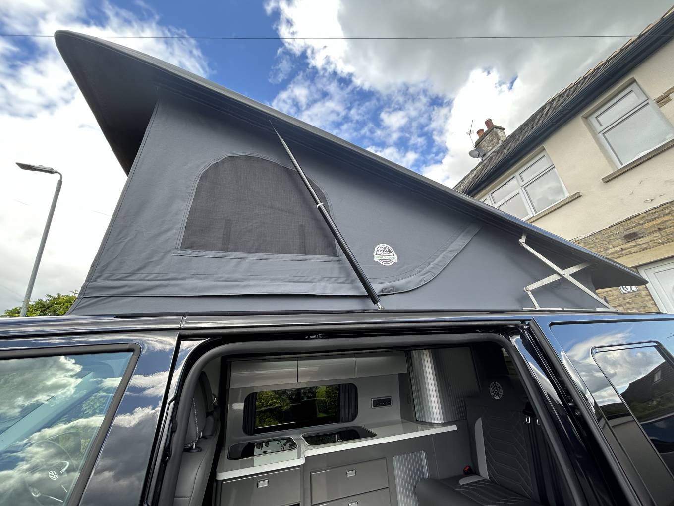 Motorhome Home Depot are proud to present this VW T6.1 with just 500 miles on the clock, Converted to a high standard it is perfect for up to 4 people to travel and have the adventure of a lifetime. This is a 72 plate, 110BHP and comes with the VW's main dealer warranty and Breakdown cover until end of 2025, so you can travel with confidents. Fitted with a luxury upholstery, VW grade trims, a scenic pop up roof so you can enjoy the views in pure comfort. You can enjoy the drive with the cab aircon, cruise control and reverse sensors. Externally it has sport line spoilers, Metallic Black Alloy wheels, it has a rock n roll bed, Sink with tap, gas cooker top, 12v Fridge, the double seat turns to the central dining area so you can dine with the family at the removable table. Over all this campervan is in fantastic condition, it can be viewed by appointment only.