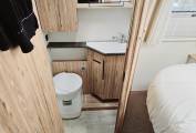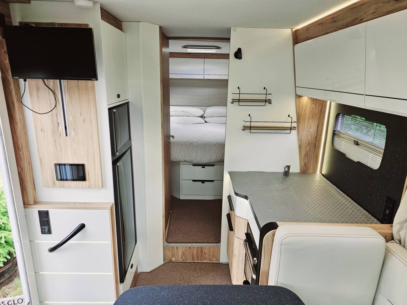 Enjoy your drive comfortably in the adjustable seats. The cab blinds provide both privacy and insulation for when you’ve reached your destination. There’s so much to love about this low-profile with its anti-hail polyester roof and walls. Its hard-wearing structure has Grade 3 insulation classification. The walls ingeniously incorporate all the motorhome’s service compartments. The easily accessible hatches provide a simple solution for draining wastewater. The large hold is low and can be loaded from both sides making it a cinch to bring your camping gear on the road.