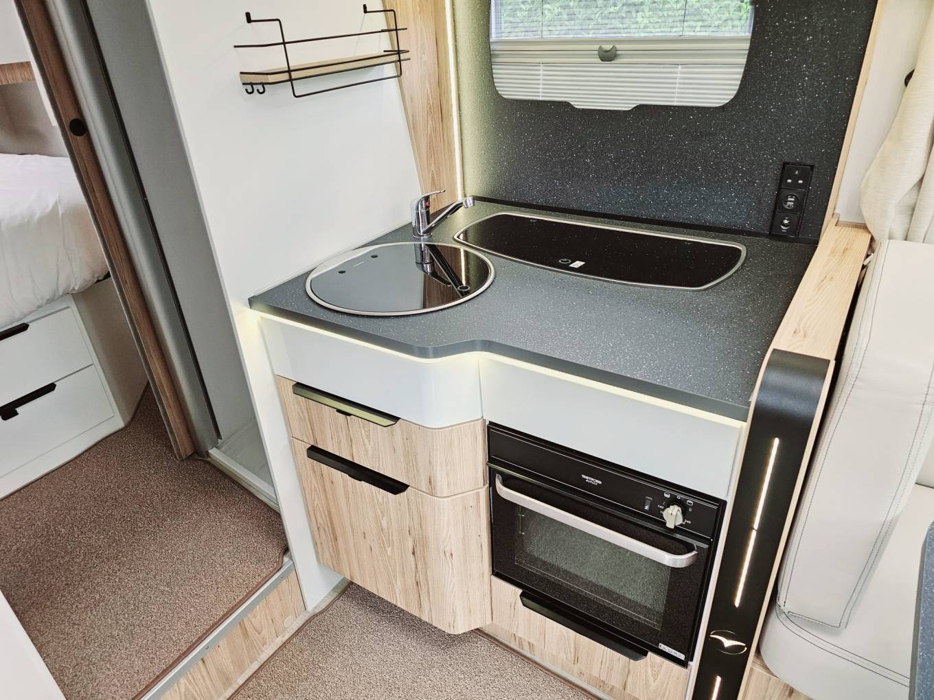 This classic from the Pacific range is a comfortable low-profile for two people with an island bed. Each area is pleasant and separate. Its stylish details and quality fittings make this a perfect travel companion for short getaways or longer trips. With 4 legal seats and optional berths in the lounge, it can carry up to 4 passengers.The stylish dinette features two pleasant bench seats. 5 people can be comfortably seated around the large dining table. The lounge features L-shaped seating and a central table. The kitchen area is stylish and practical with an L-shaped worktop and a three-burner hob positioned opposite a 160 L fridge.