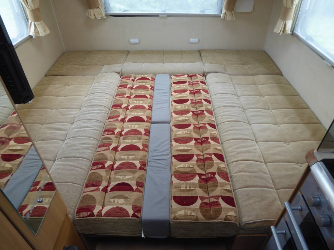 At the rear of the motorhome is a U-shaped lounge for leisure and dining. This area can be readily converted into a large double berth when required, or used as two single beds (190cm (L) x 70cm (W) and 185cm (L) x 70cm (W)).