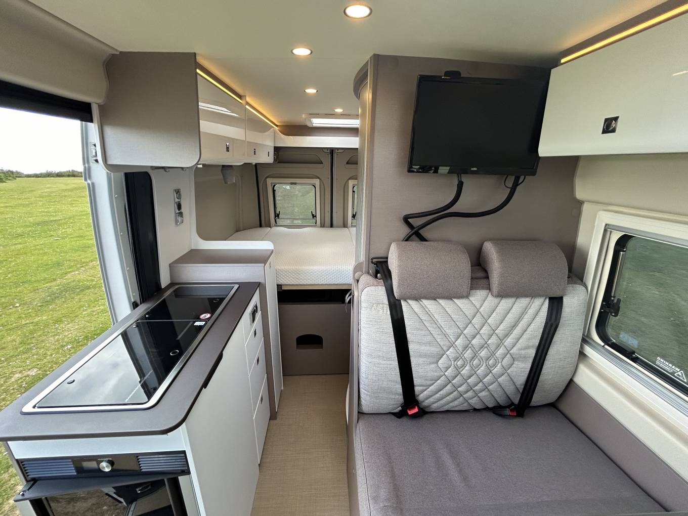 TV and 2 extra travelling seatbelts. This is a nice space to relax and enjoy