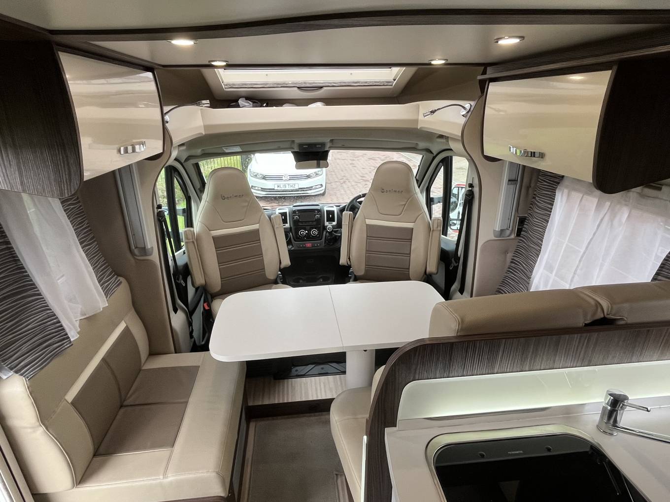Benimar Mileo 294, Luxury 4 Berth Motorhome with Island Bed, Garage and Electric Drop Down Bed. This motorhome was regisitered in October 2018, it has been well maintained with good service history, including New Cam Belt, current Habitation Certificate and just 8,345 miles on the clock. At the rear is the bedroom with Island Bed, the bed height can be adjusted to give more storage in the garage. Forward from this is the bathroom area with separate shower compartment and en suite facility. In the centre is a well equipped kitchen, including a microwave and at the front is the lounge, with adjustable table, captains seats and electric drop down bed. It comes with Cab Air Con, Cruise Control, 4 Seat Belts, Rear Camera, DAB Radio, Alloy Wheels, TV, Canopy Awning, Bike Rack, Solar Panel, Outside Shower and BBQ Point. It also comes with Gaslow Refil System and 2 sets of keys. A great example available for viewing by appointment in the Blackpool area, call for more photos, videos and information.