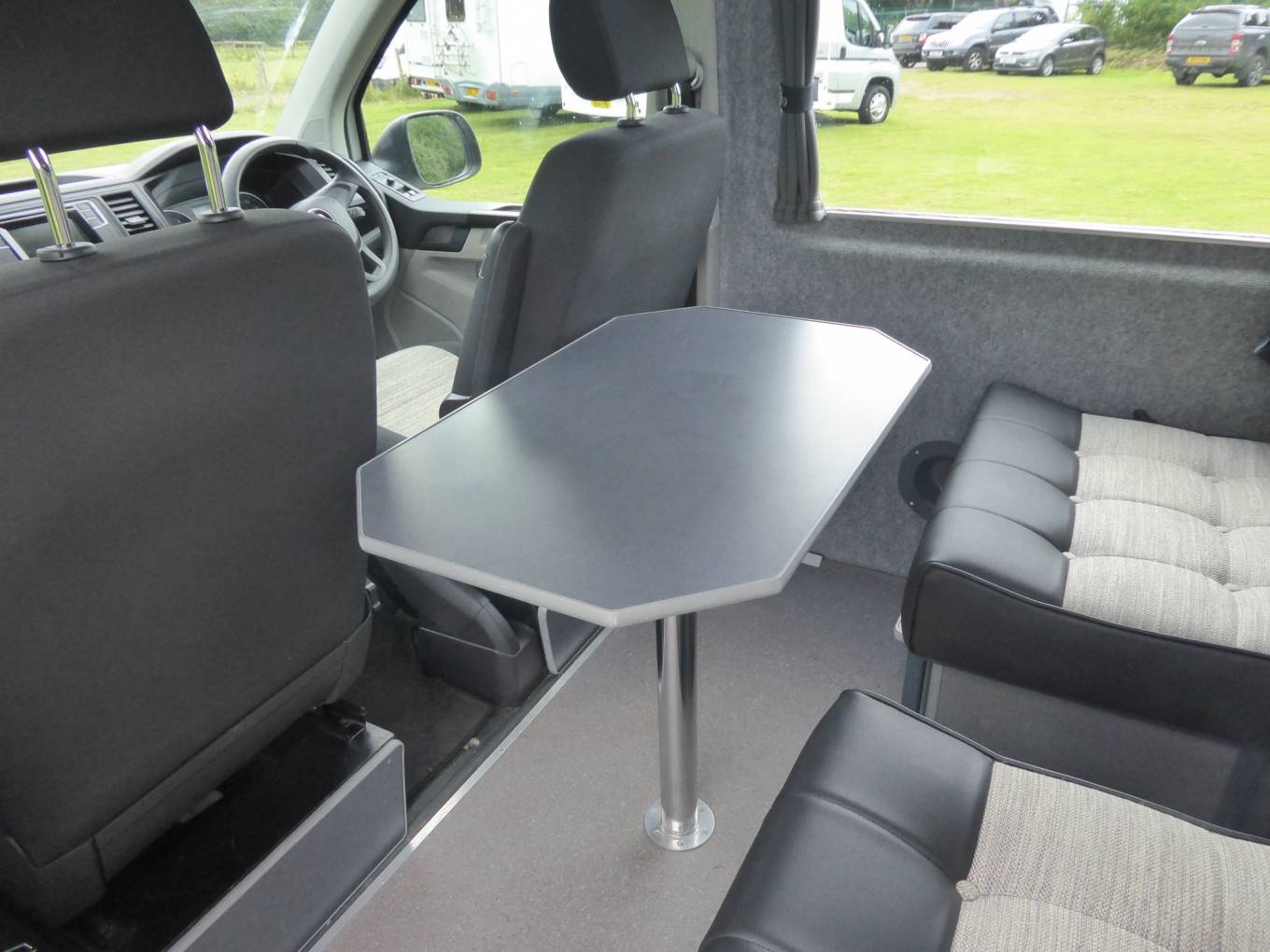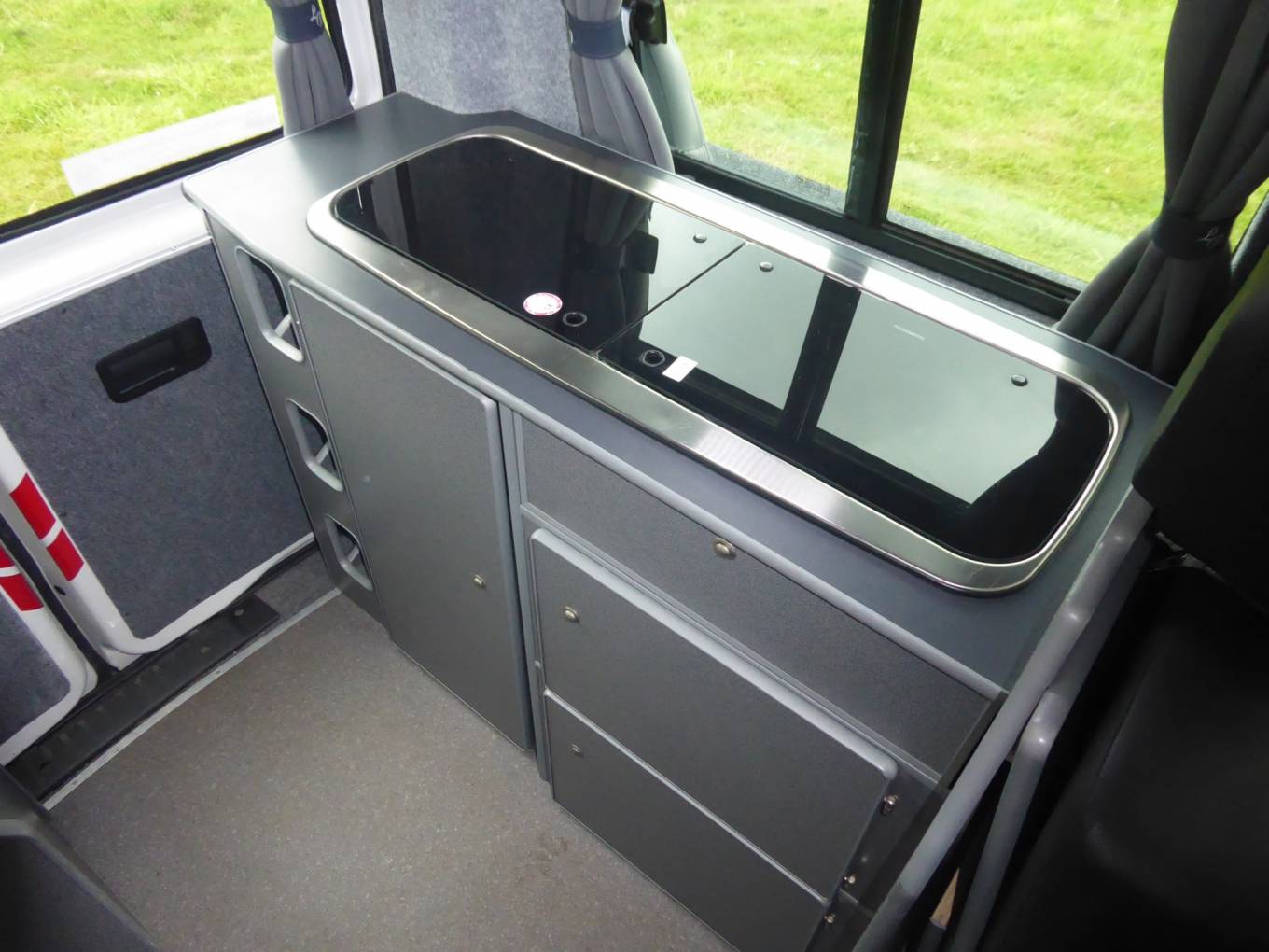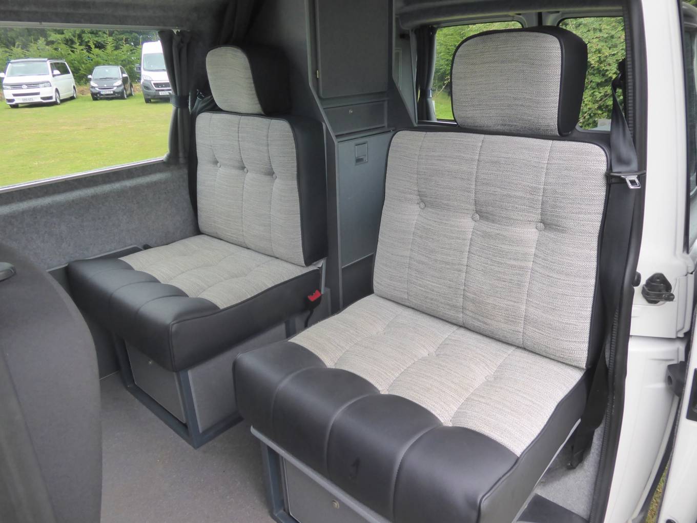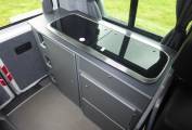 The central habitation leisure/dining area is comprised of broad, parallel nearside and offside forward facing single seats, each with an additional seat belt. The swivel cab seats can be utilised to enhance this area with the use of a removable table, and the seating can be used to make up two single berths.