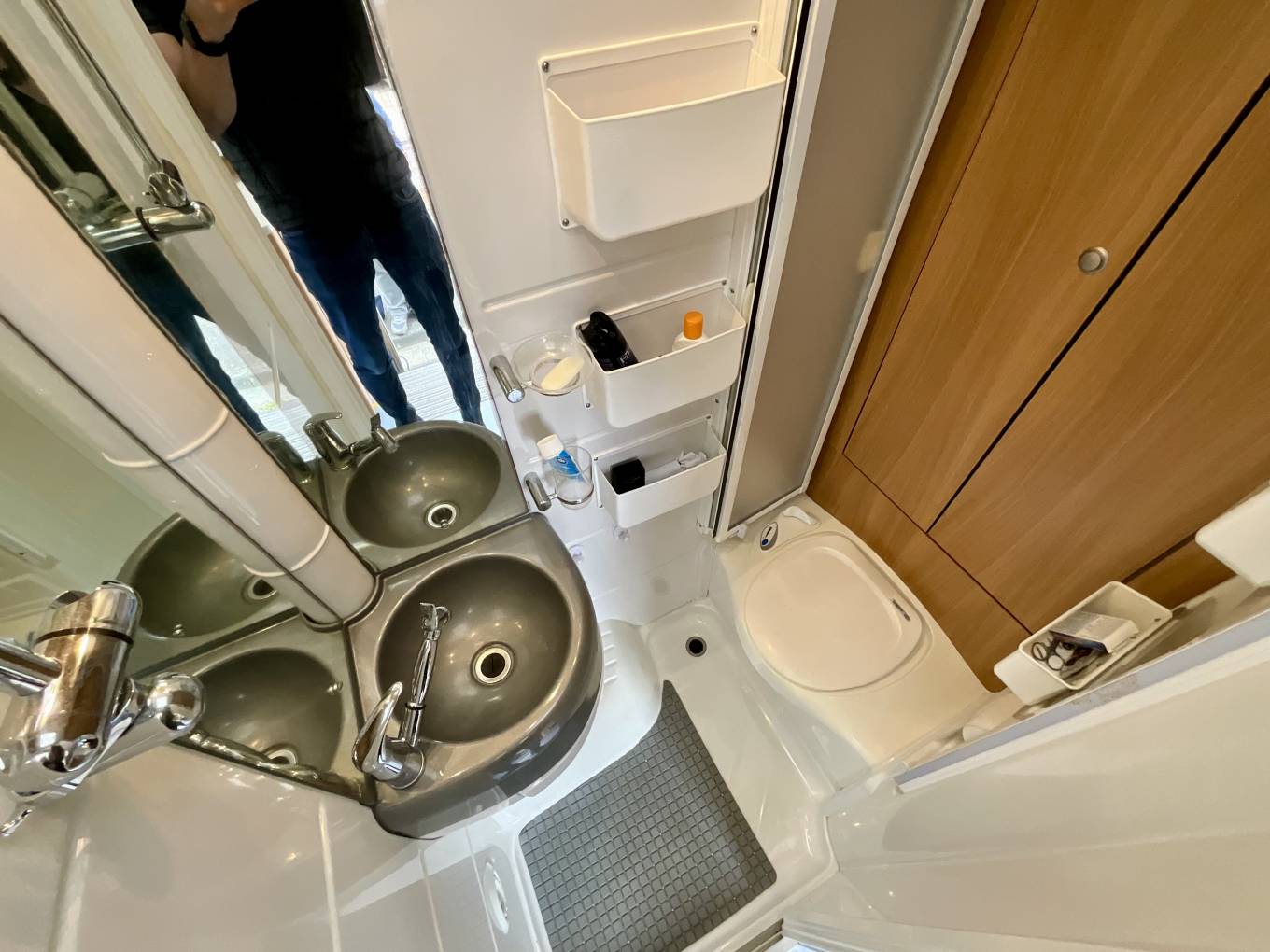 The kitchen area has all you need in terms of equipment, benefitting from a microwave, oven with separate grill and enough storage space for all your requirements. The washroom also is a good size for the length of vehicle, and like the rest of the motorhome is in beautiful condition and an absolute credit to its former owners.
