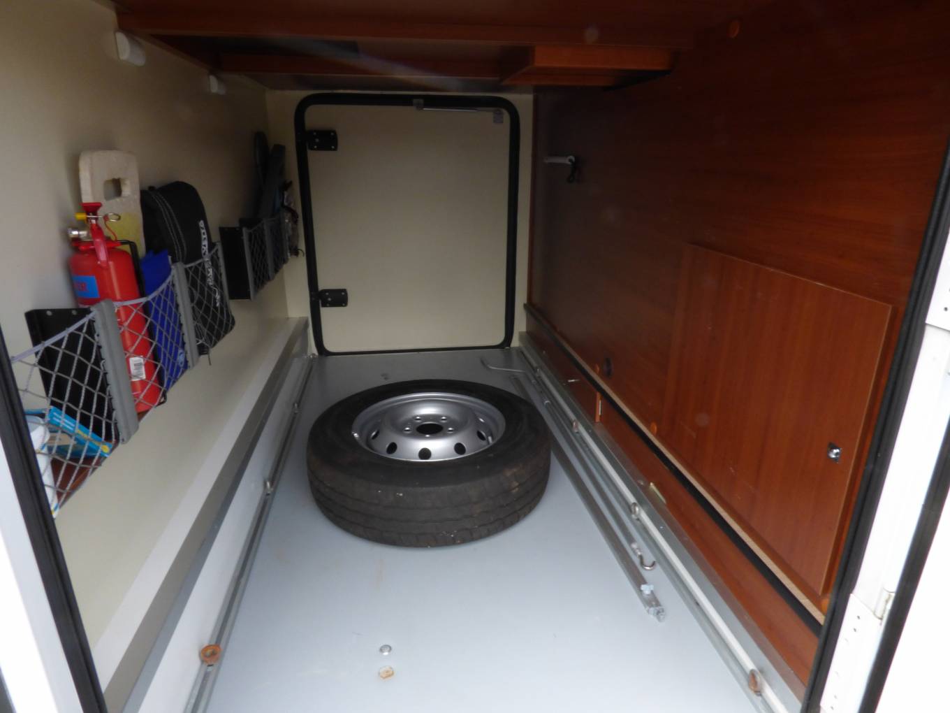 Externally, the vehicle has a number of external lockers including a truly cavernous rear garage with large doors on either side. One gas bottle is included in the sale and 2 leisure batteries are topped up by the solar panel. There is a very large wind out canopy and towbar, external 240v plug, external shower point and external BBQ point too. A reversing camera, towbar and a 4 bike rack re included in the sale along with a pedal lock.