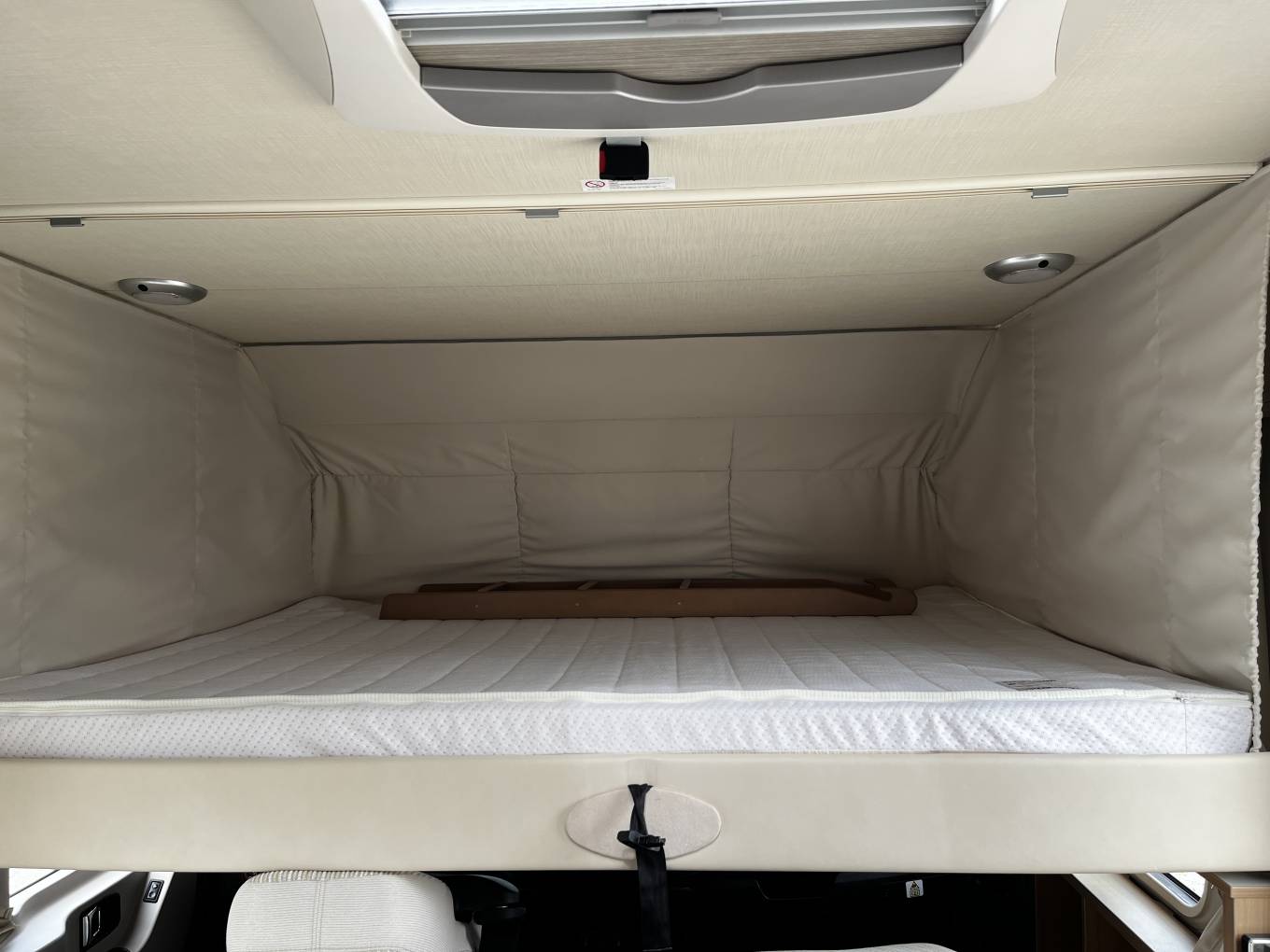 cab pull down double bed with curtains, safety net and ladder. Rear ¾ bed suitable for one adult or 2
