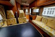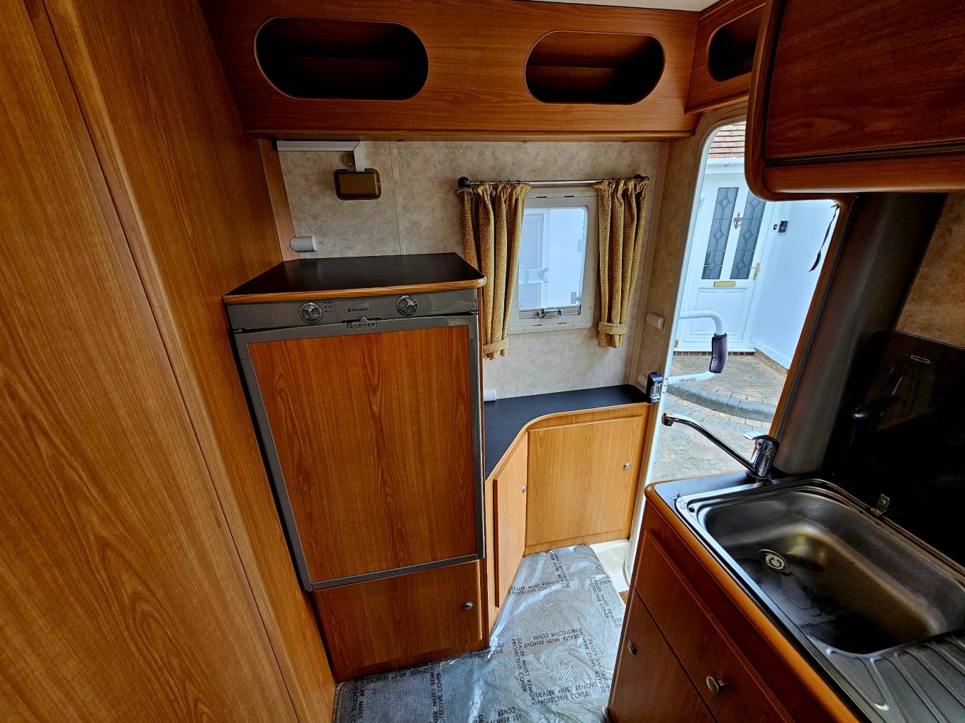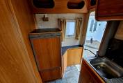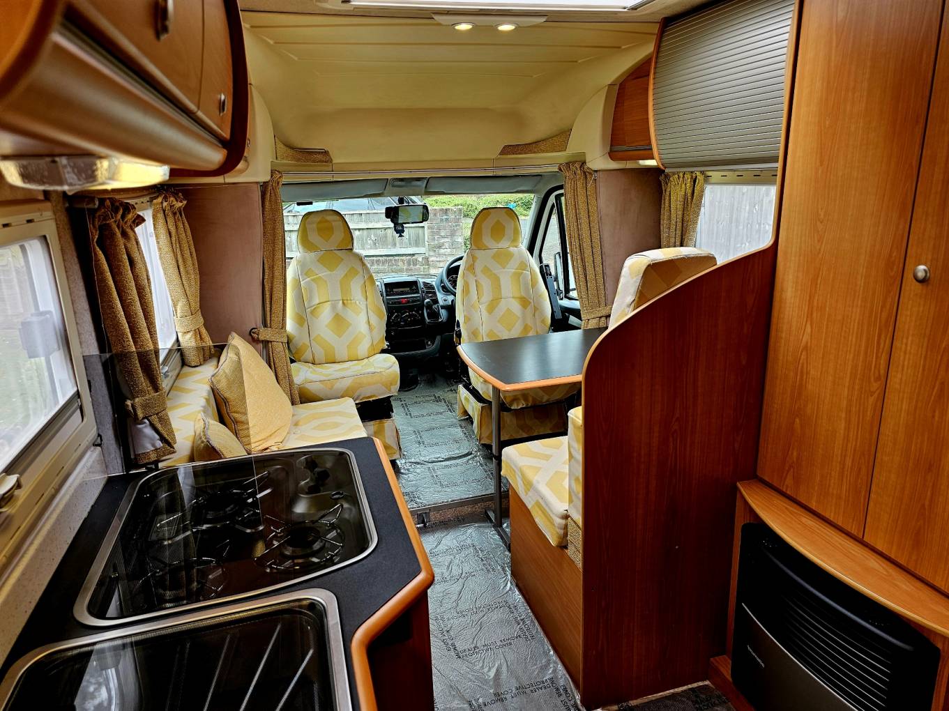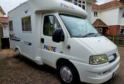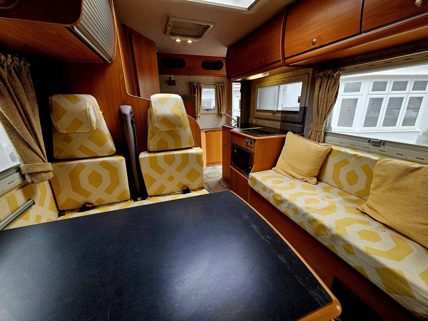 This is a very compact, well built low profile motorhome for 2,with central lounge/ dinette/bed area. This dining area is complemented by the two swiveling seats, and a side sofa. Behind the sofa is a surprisingly well equipped kitchen, with gas oven/grill combo, hob, 3 way fridge/freezer and sink/drainer. A great compact motorhome for 2 with the added benefit of 2 extra seatbelts for day trips., Low mileage, PLGV (Under 3.5t), Immobiliser, Cloth seat trim, Adjustable Steering Column, Power Steering, ABS, Colour Coded Body, Electric Mirrors, CD Player, Front dinette with travelling seat belts, 2 Berth, Heating, Hot Water, Leisure Battery, Mains, Power Management, Roof Light, 3-Way Fridge, Drainer, Grill, Hob, Oven, Shower, Battery Charger, Blinds, Flyscreens, Power steering.