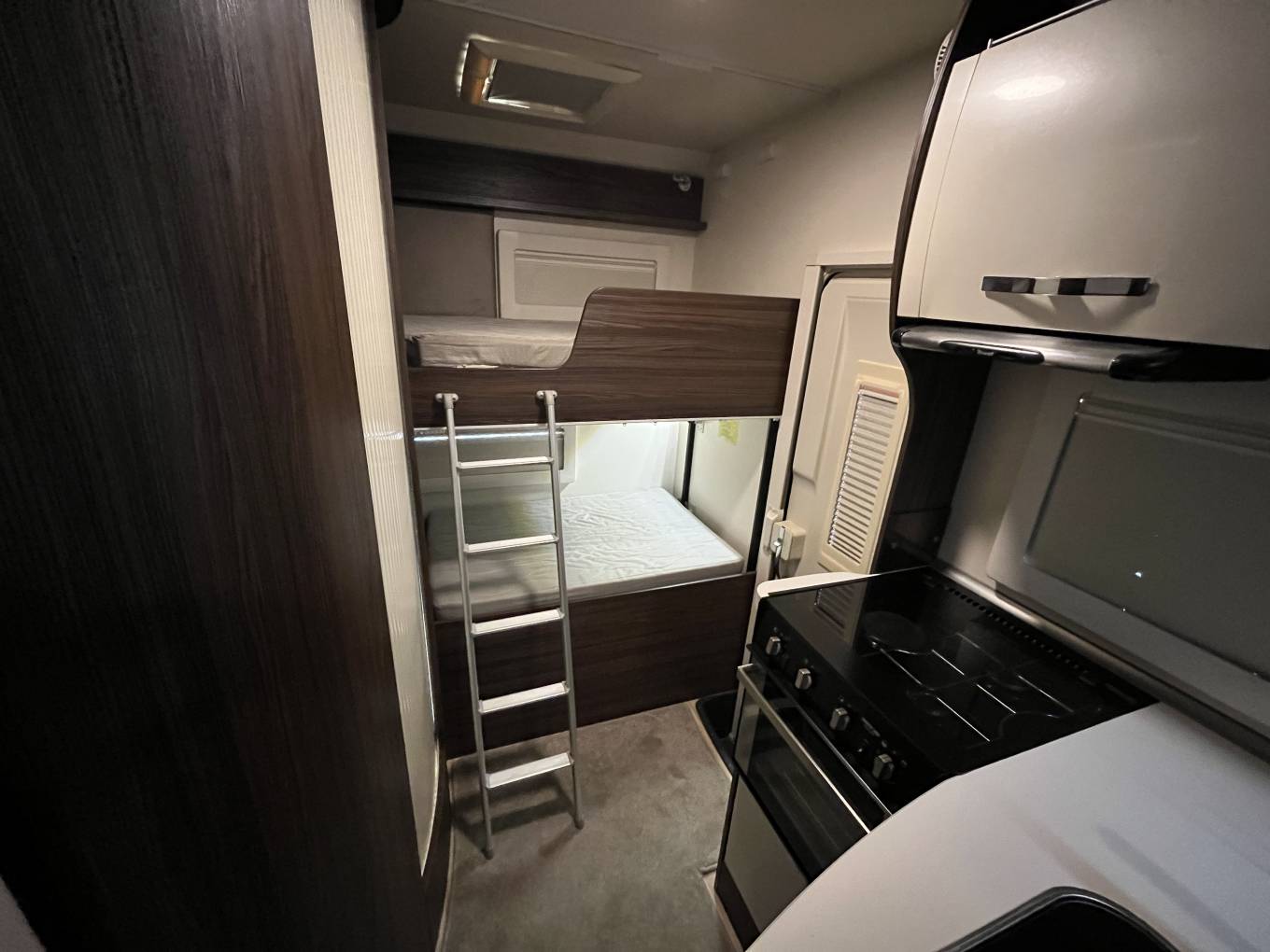 rear bunk bed setup, and the possibility to convert the dining area into an