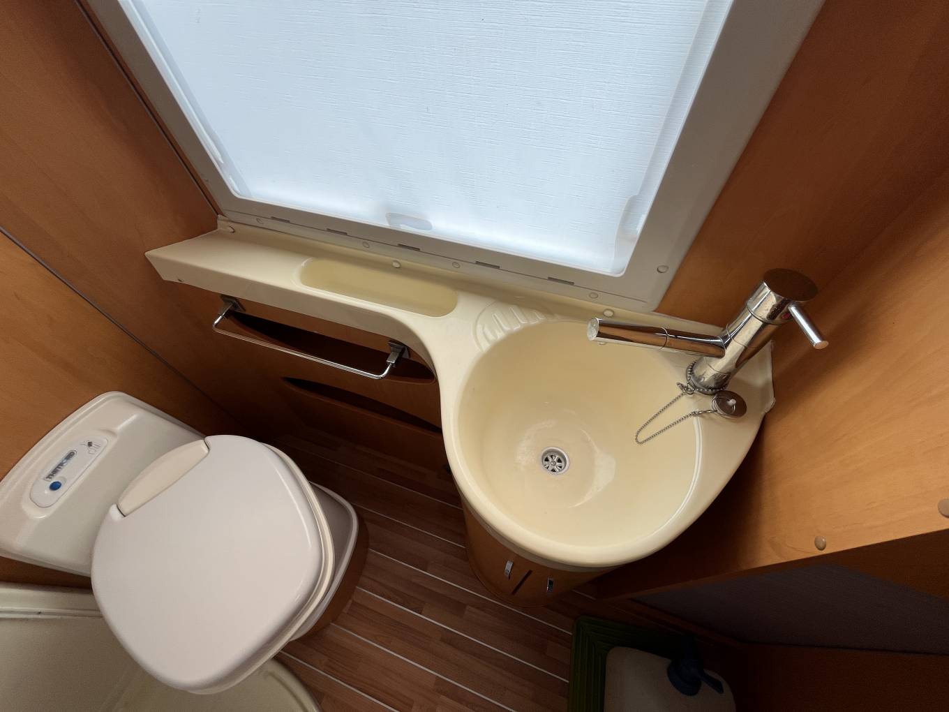 is the wardrobe space and well-appointed washroom with a swivel Thetford