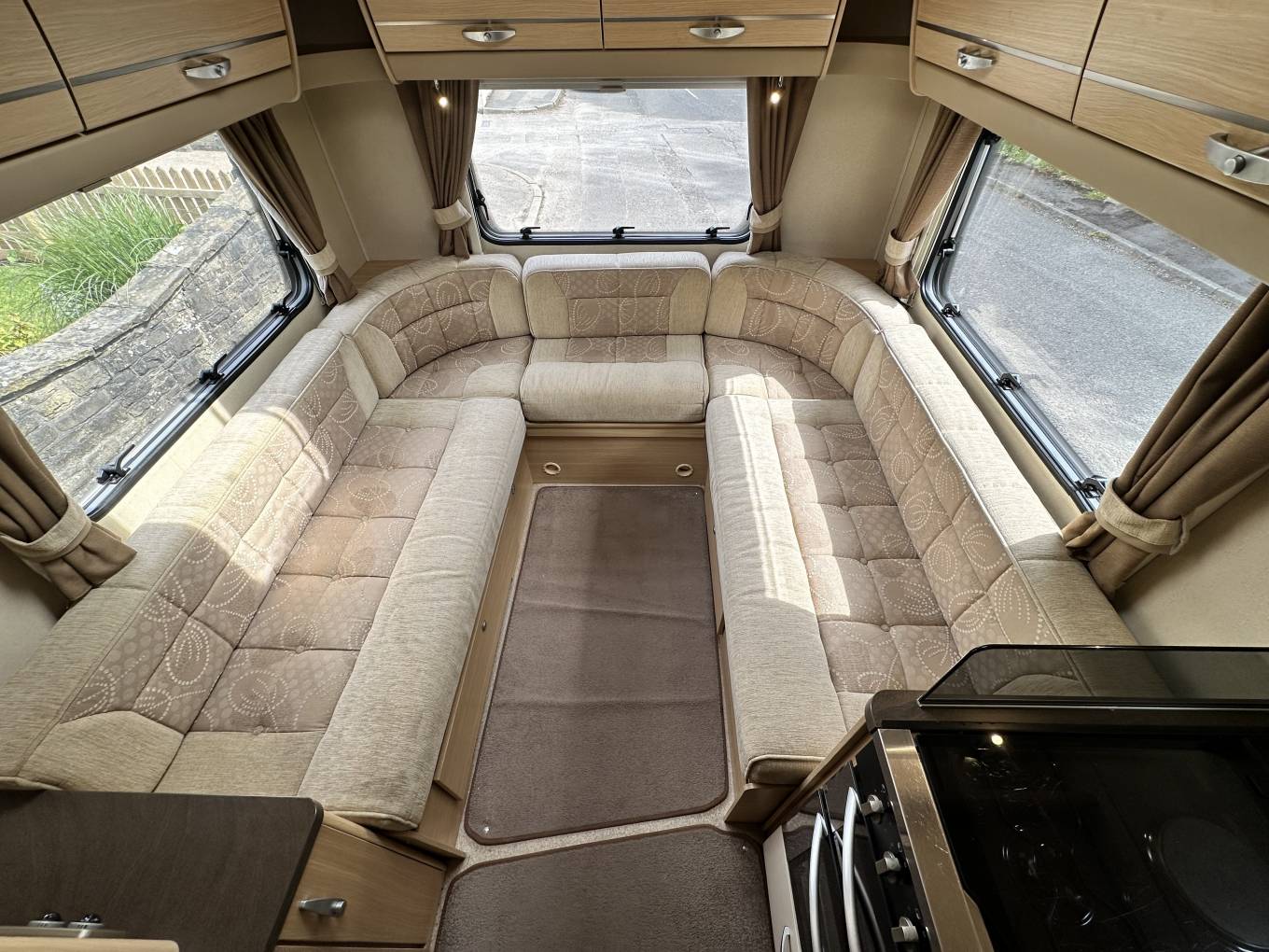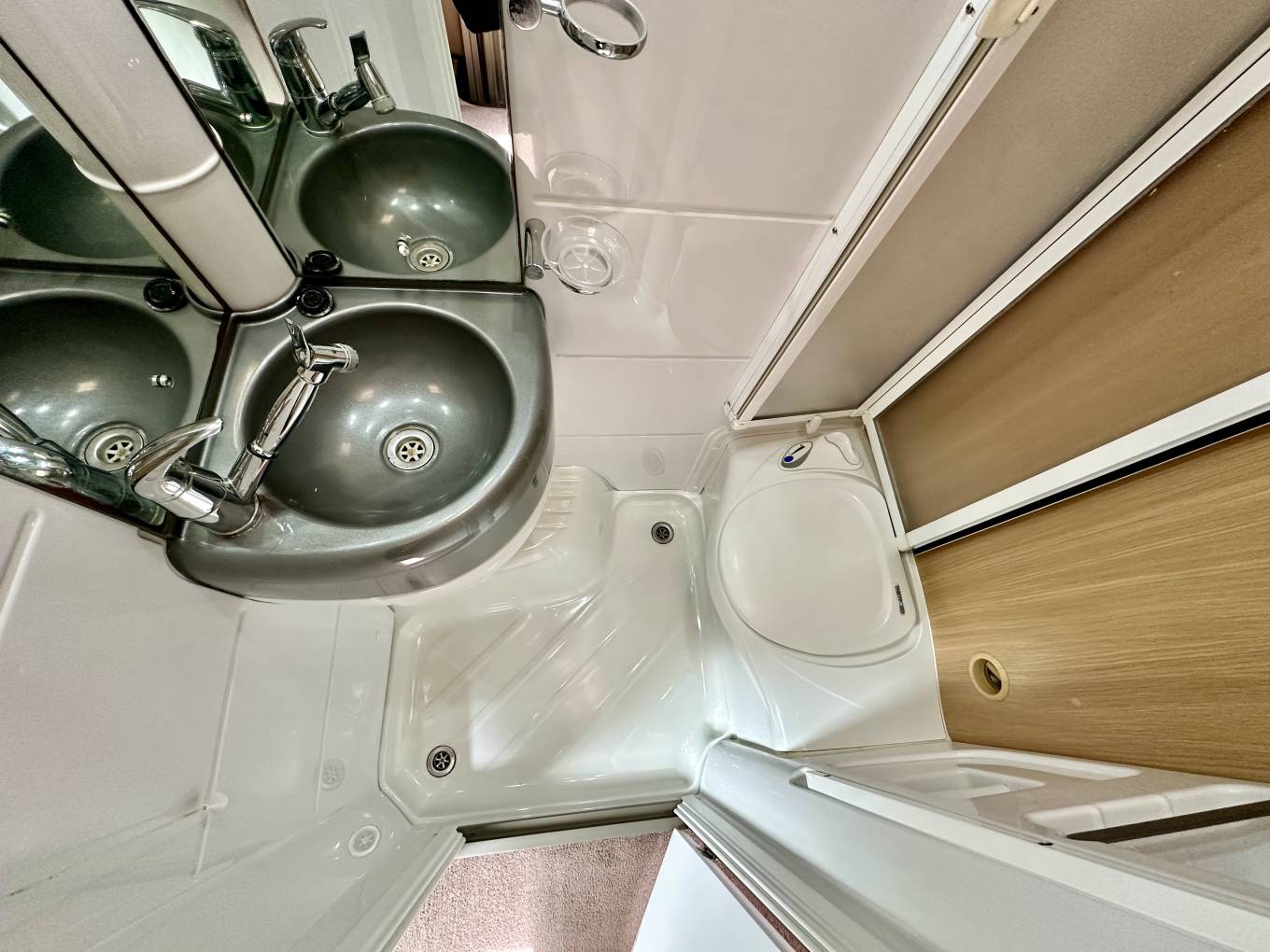 Firstly, we start in the rear lounge which is flooded with natural light through the triple aspect windows. This is the perfect place to relax and take in the surrounding views. When the night draws in the rear lounge converted to a huge comfortable double bed. Next, is the well equipment kitchen. This includes a gas hob, electric plate, oven, grill, 3 way fridge, wash basin and microwave. Opposite you will find the washroom, complete with toilet, shower and wash basin.