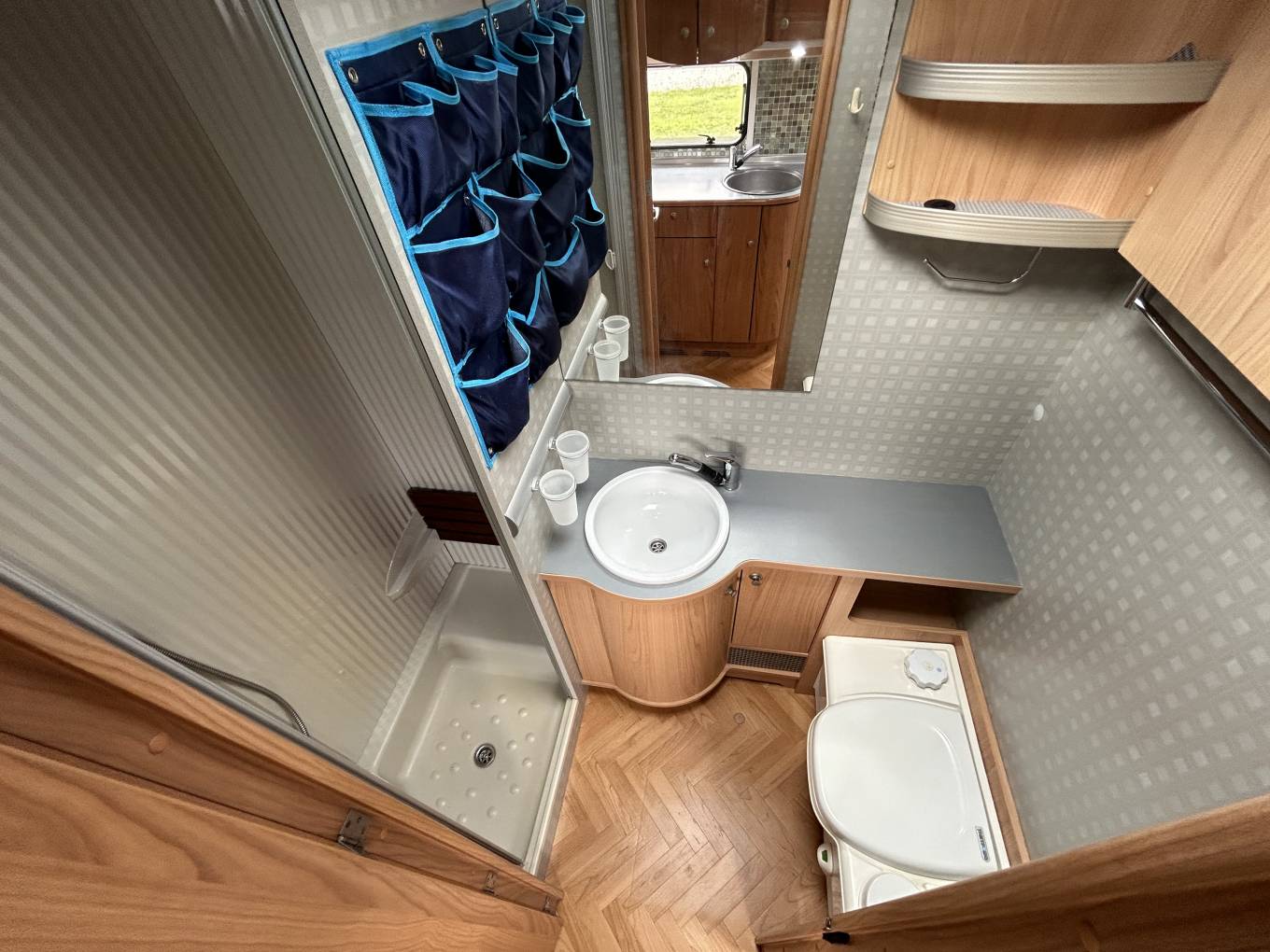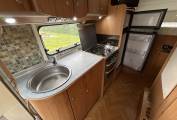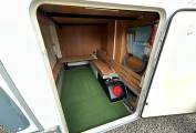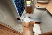 Layout - The end bedroom space boasts the fixed double transverse bed with storage that sits above the large garage space and you have nicely stored away stairs to help you on to the bed. Infront of the bed you have more storage with the wardrobe space. The washroom is next and you have the desired separate shower cubicle with the Thretford toilet, washbasin and vanity mirror. Across from the bathroom and next to the habitation door is the kitchen area and here you have everything you need including: modern 3 way fridge with freezer space (new fridge from 2021), 4x gas hobs, separate oven and grill and mixer tap and sink unit.