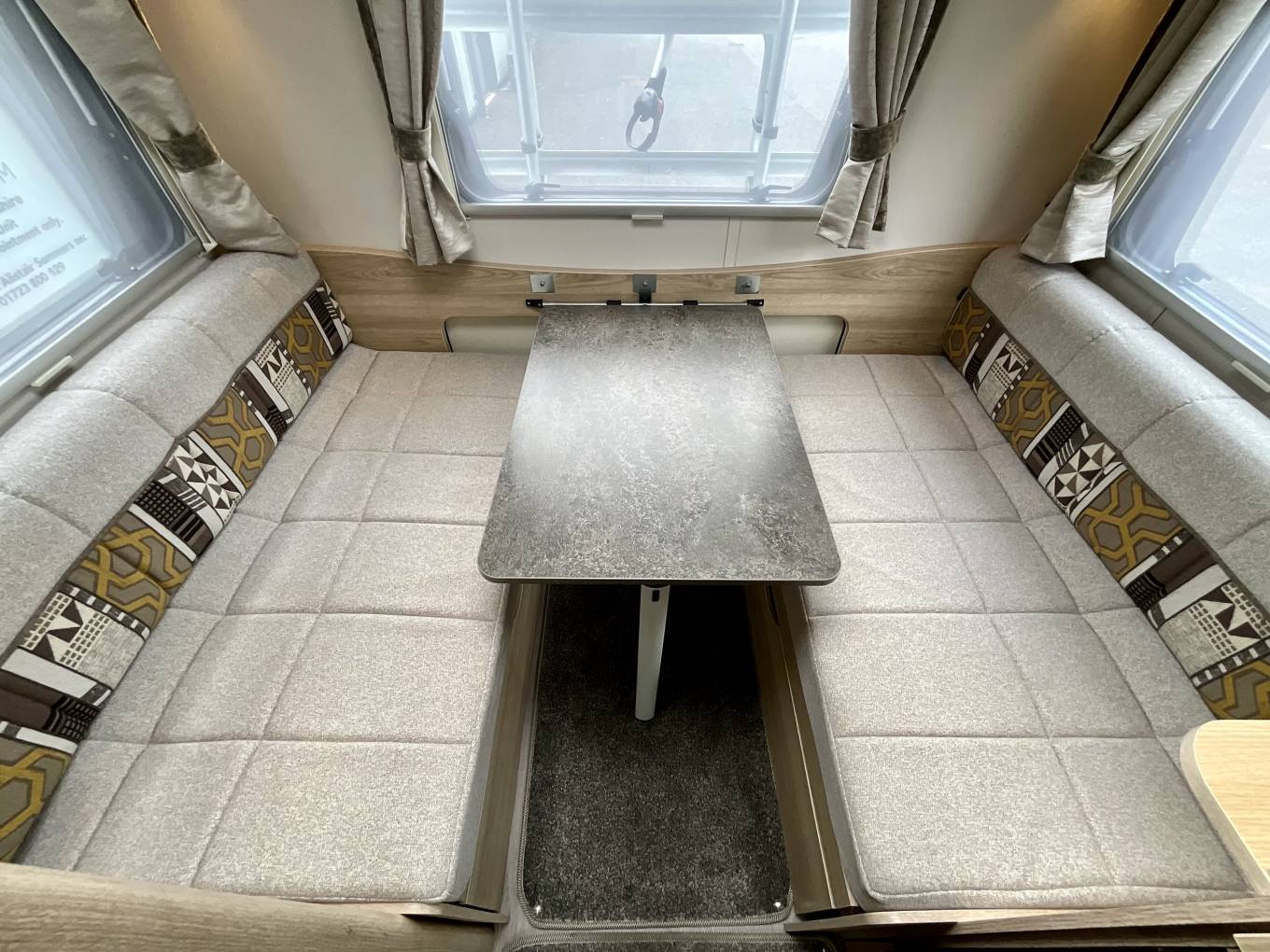 To the front, another lounge can be used to seat four with two swivel seats for driver and passenger, and rear bench with another sizeable table.
