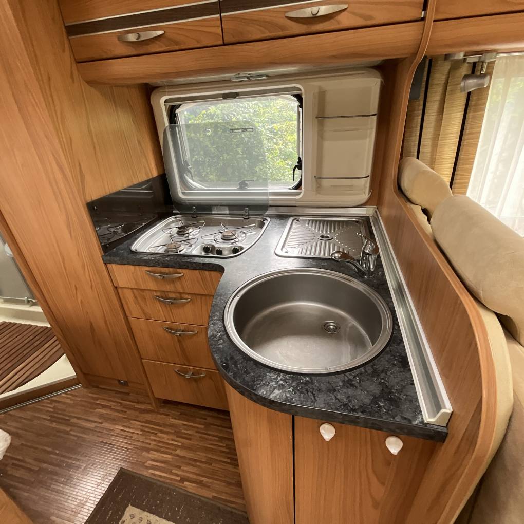 This Bürstner Solano is in very good condition and has been lovingly look after by its 2 previous and current owner. The layout in this vehicle is one of the most popular layouts, with its forward facing seats with seatbelts in the middle and a fixed French bed towards the rear. Because of the layout your get a very sociable front lounge especially when both front seats are swivelled round and good size locker.