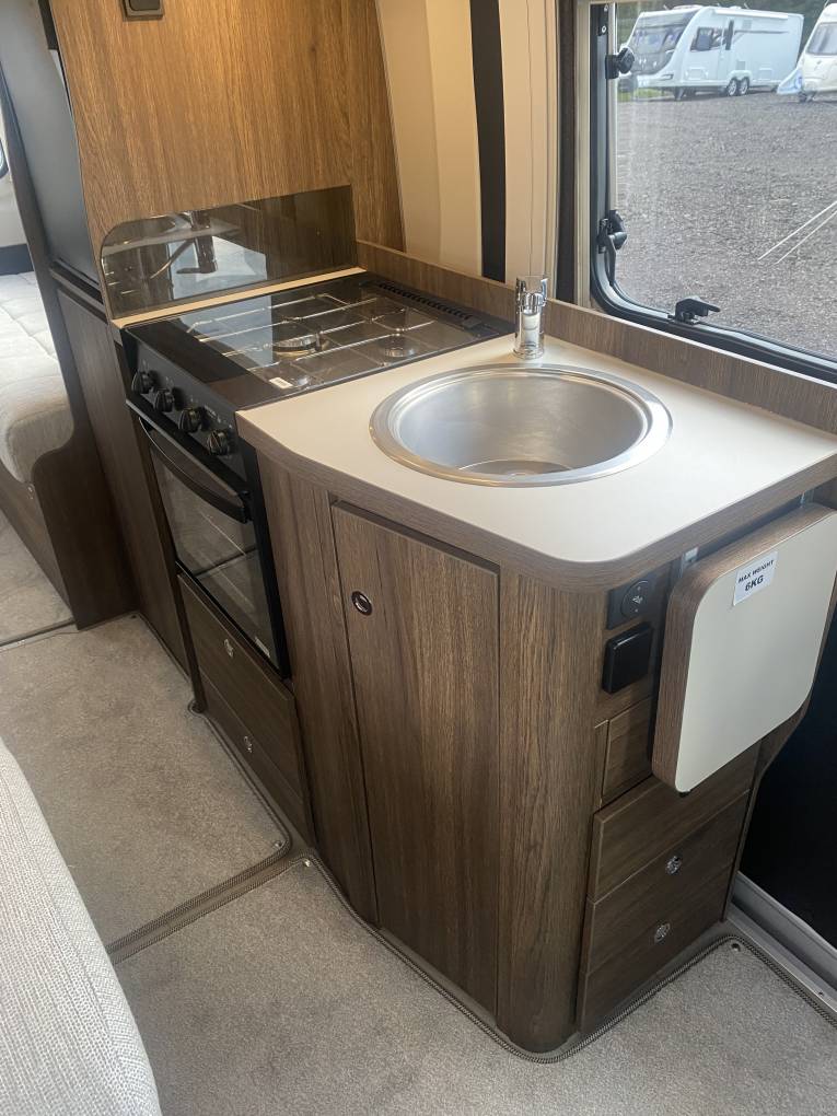 and it has a well appointed kitchen combi oven, 3 burner gas hob with a glass