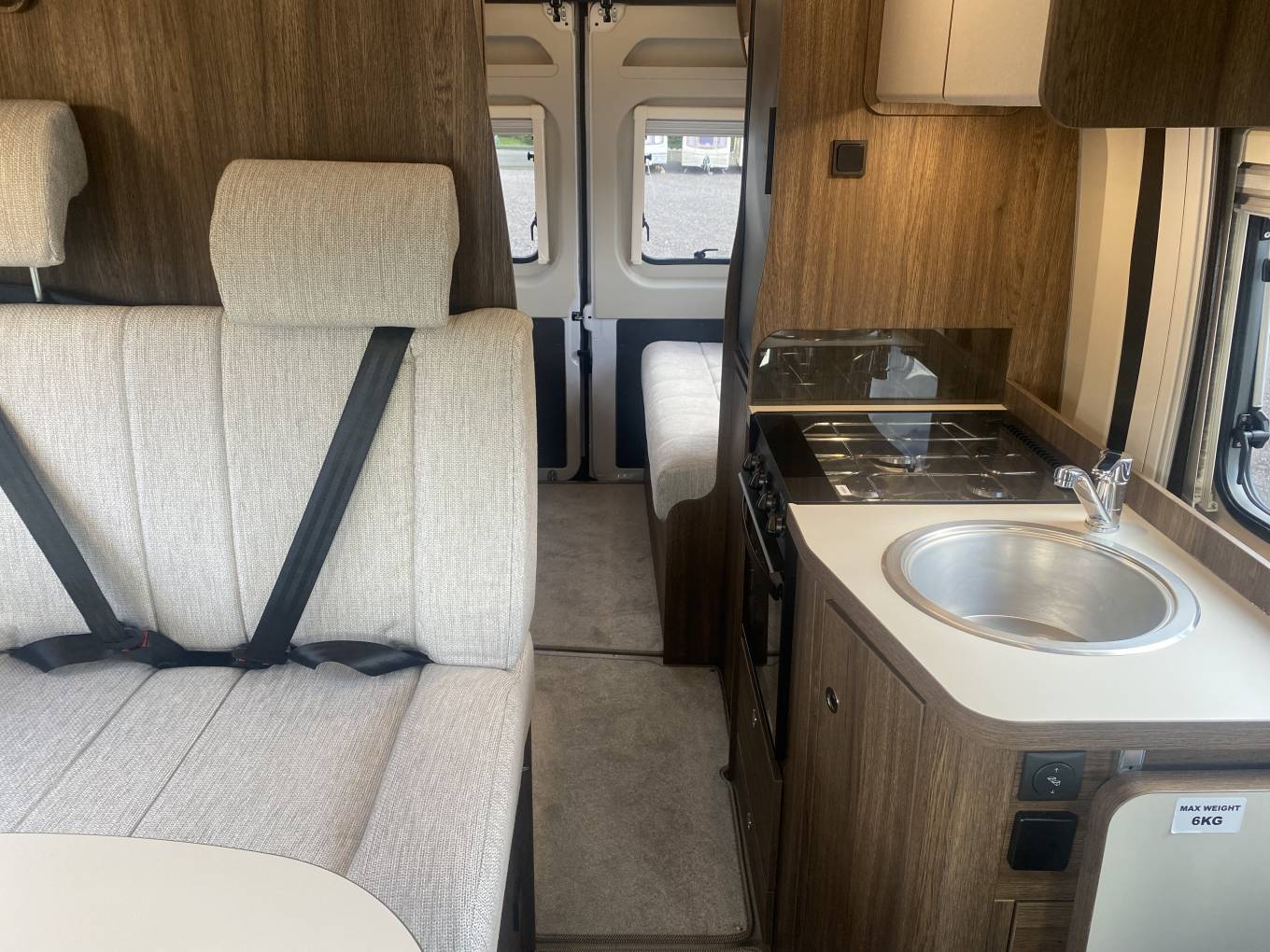 The CV80 is based on a Fiat Ducato upgraded 140 BHP manual transmission Euro 6 2.2 litre engine with its Gross MAM weight at 3500kg allowing anyone with a standard UK driving licence to drive it and its length is 5.9 metres and its width is 2.1 metres.