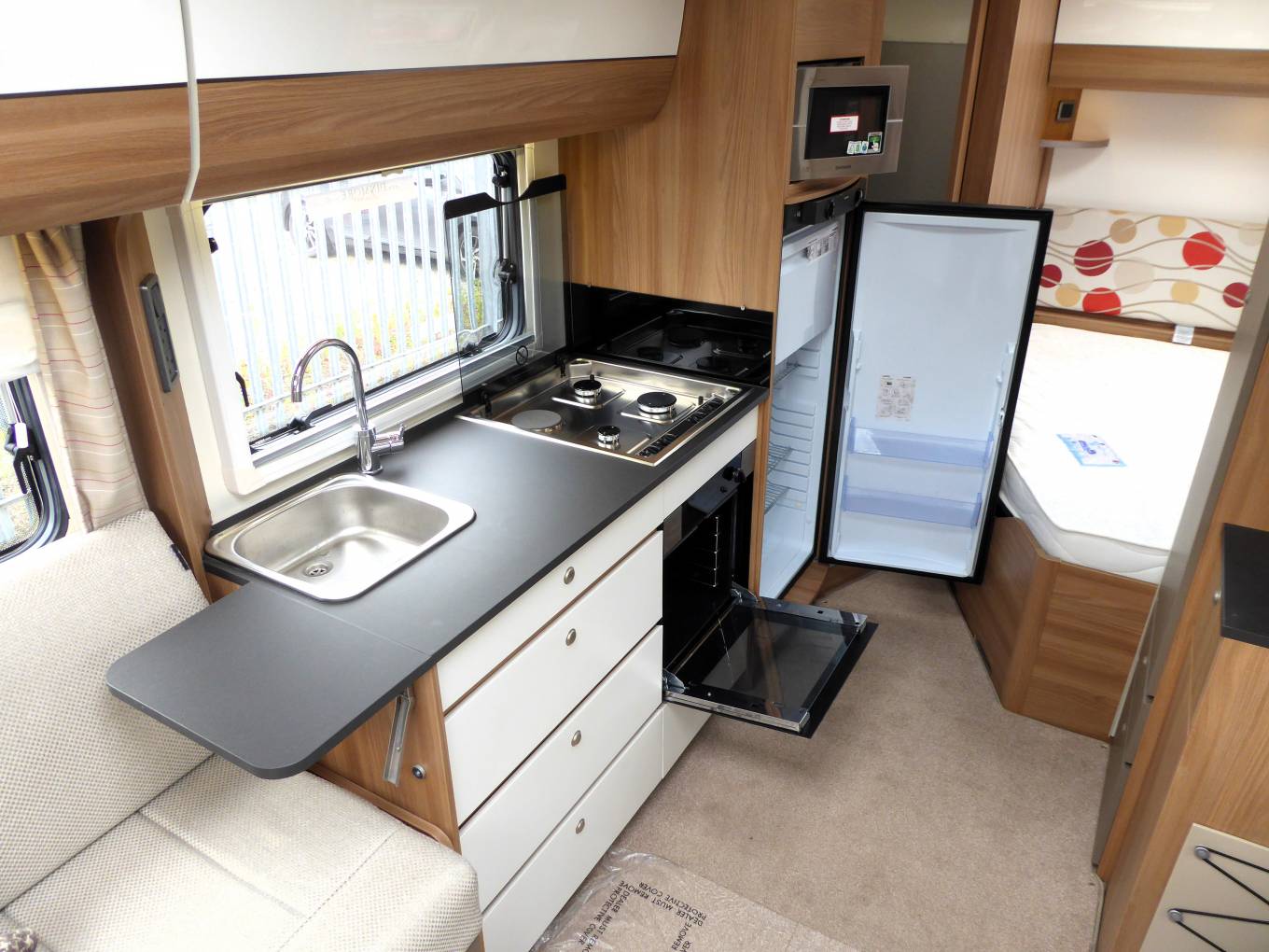 Additional features include, solar panel, gas bottle, wind out canopy, ALDE central heating, bike rack, external 230V socket, with TV ariel connection plus gas BBQ point. There are several electric sockets and USB ports You can pack plenty, with several overhead storage units and 1 hanging wardrobe inside and storage under the bed, accessible from outside.