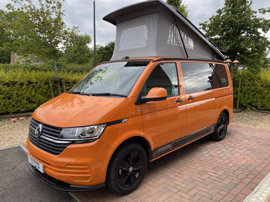 LOCATED IN SOUTH WARWICKSHIRE this is a real head turner and versatile 4 berth, 5 belt VW EXPEDITION CAMPER based on a T6.1 Transporter T28, registered in September 2021 on a '71 plate, with the proven VW 108bhp 1968cc TDi Euro 6 engine, with a manual gearbox. It has only covered 6,791 miles, the first MOT is not due until September 2024 and last serviced by a VW dealer in August 2023 at 4,017 miles. This a great example of a VW camper, with a genuine reason for the sale.
