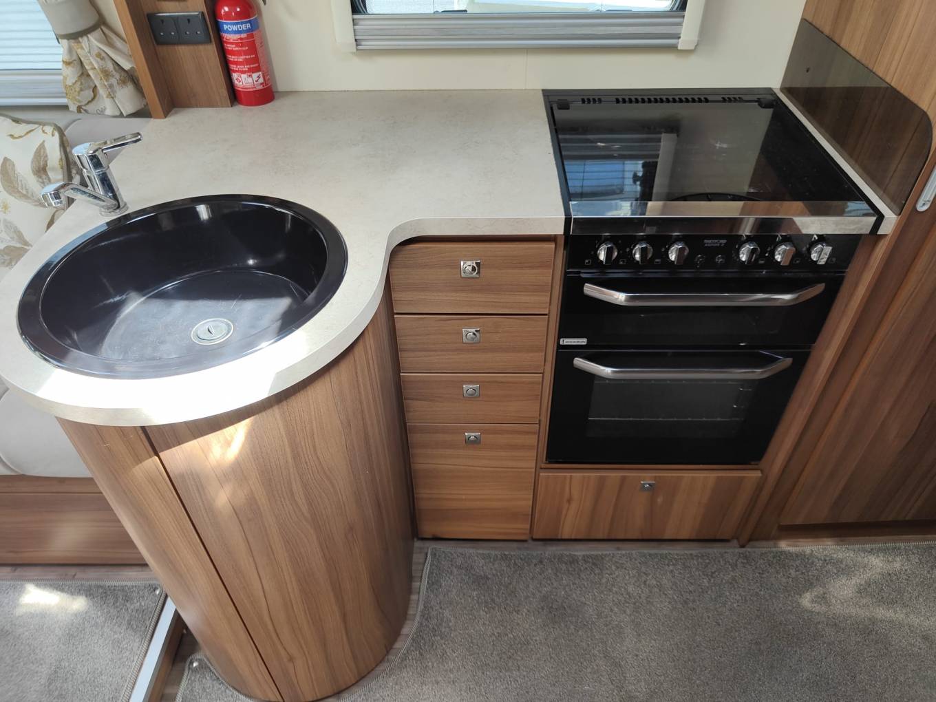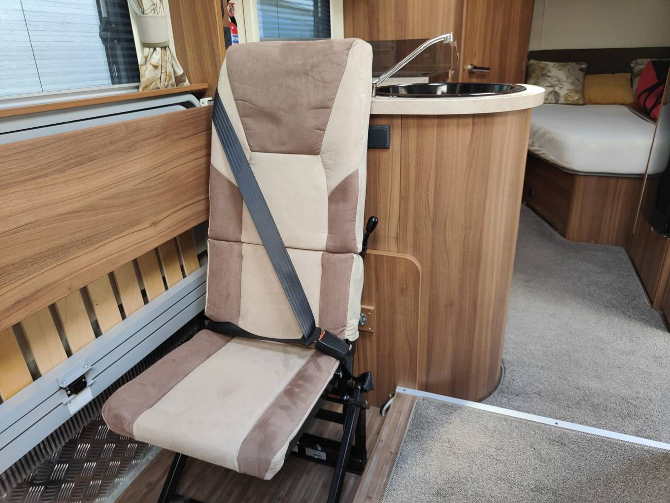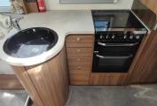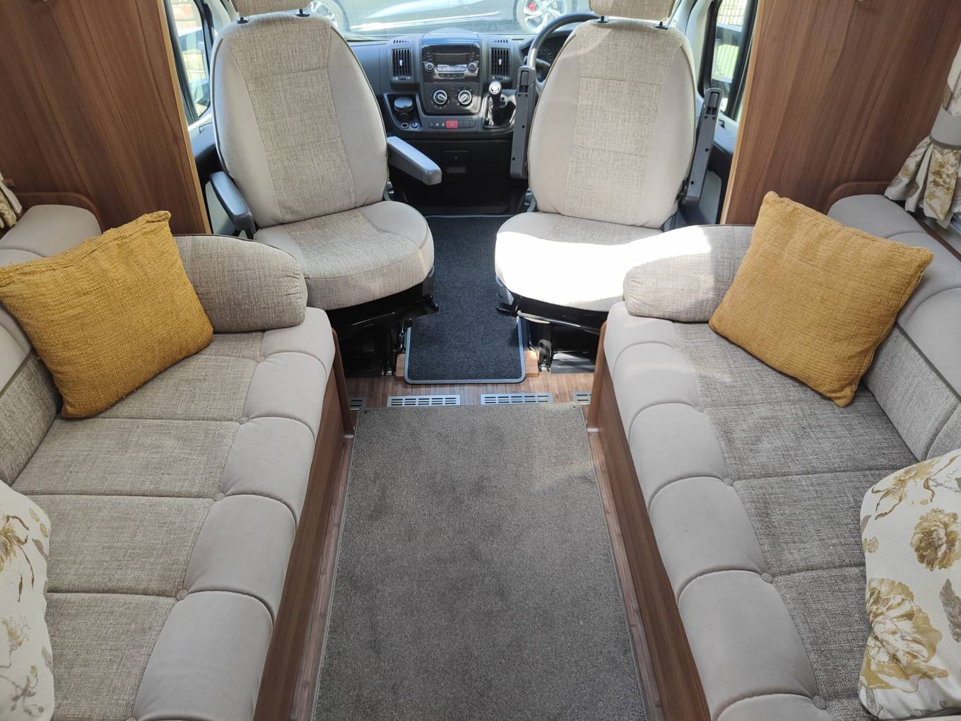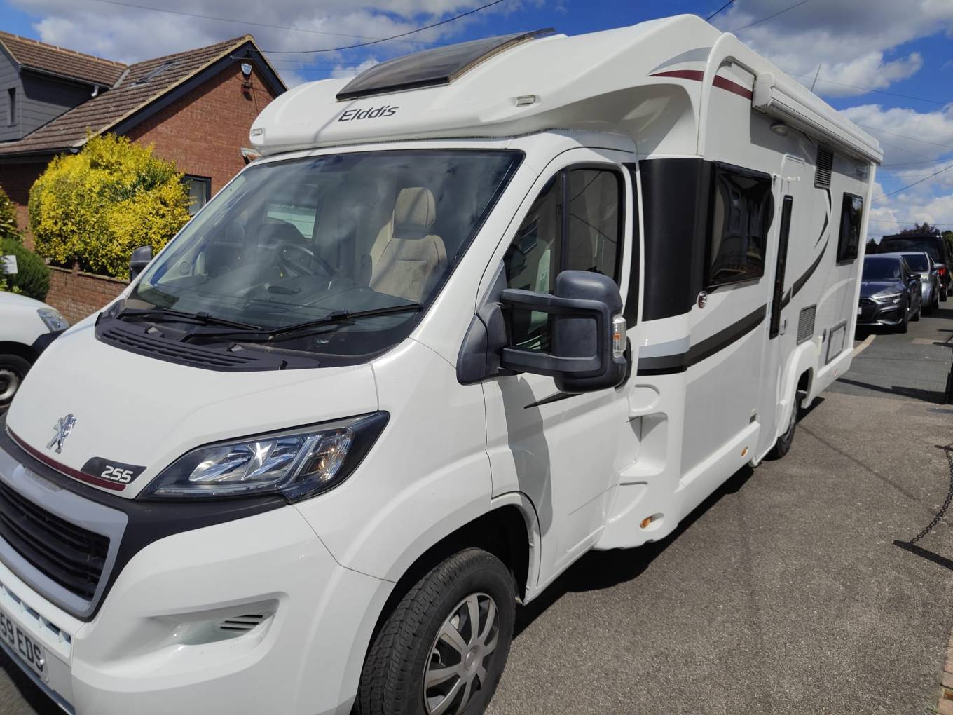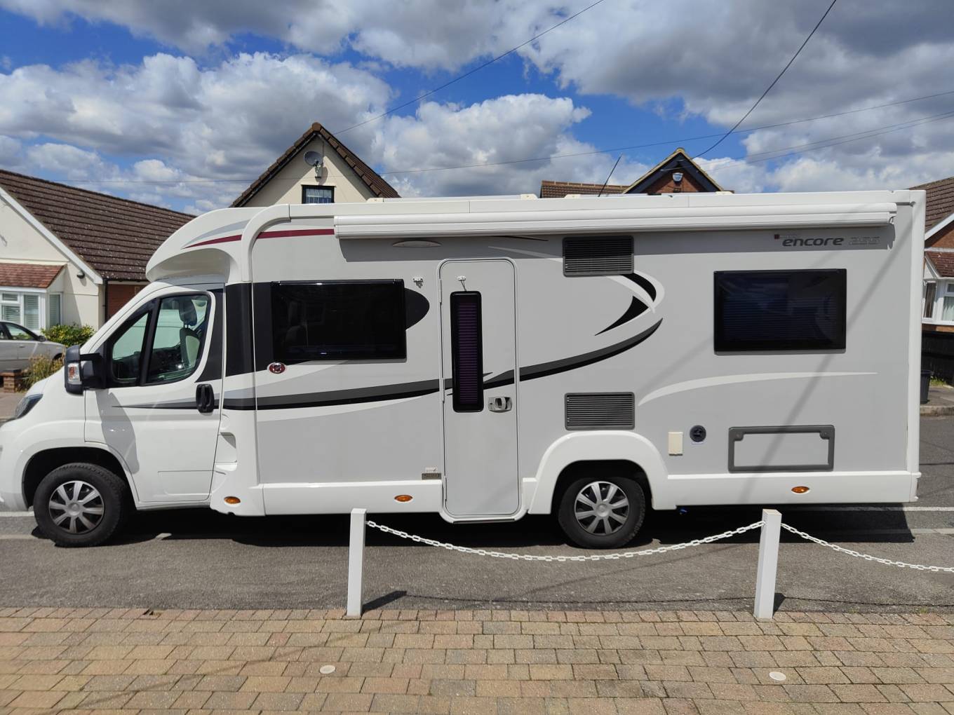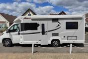 This is a great example of the top of the range Elddis Aspire 255. This 4 berth, 4 seatbelt lowline motorhome weighs in at 3500kgs so can be driven by all. With a generous french bed to the rear with adjacent bathroom, centre kitchen and front longitudinal benches that easily make a second double. When the 2 additional seats are needed, they fold up from underneath the benches and include 3 point lap and diagonal belts. Ideal for a family or a mature couple with occasional guests. Great standard spec and this example includes solar power, awning with enclosure, microwave, cycle rack, rear camera and gaslo refillable gas bottles and a top spec Alde heating system. Based on the excellent Peugeot Boxer cab, this 2.2 derivative includes cab aircon, cruise control and a six speed manual gearbox. 14k miles from new. Based in Kent and more pictures available. Awaiting preparation.