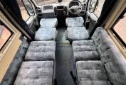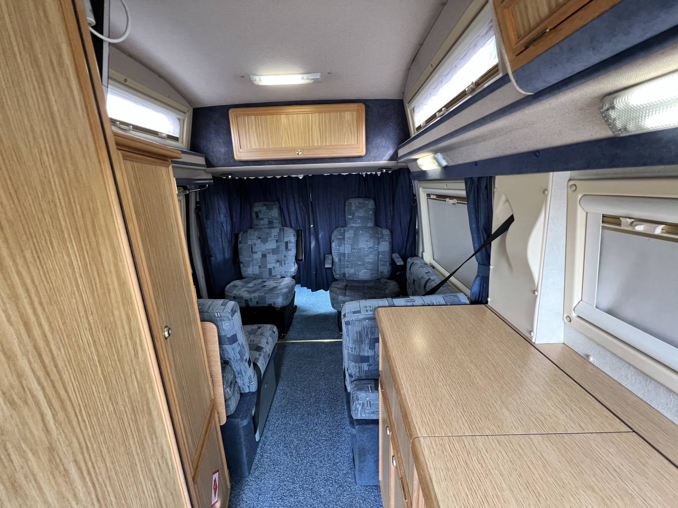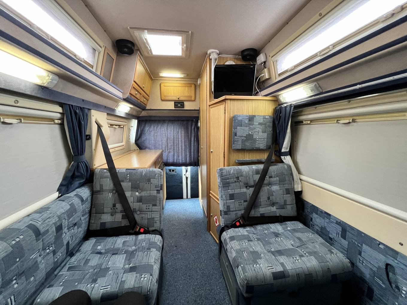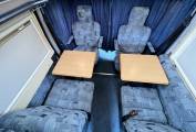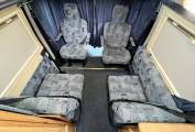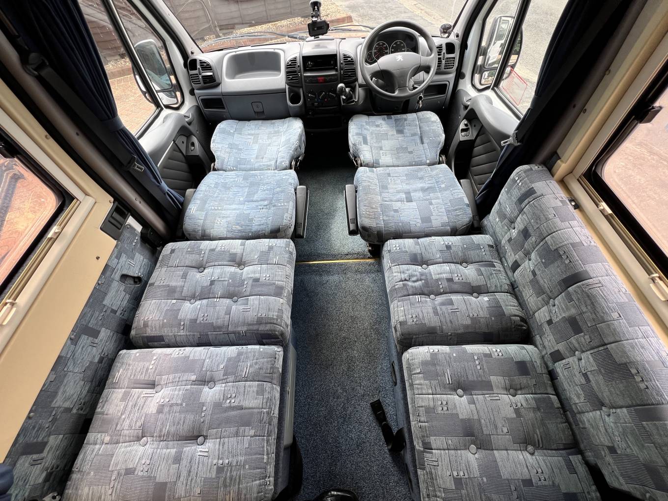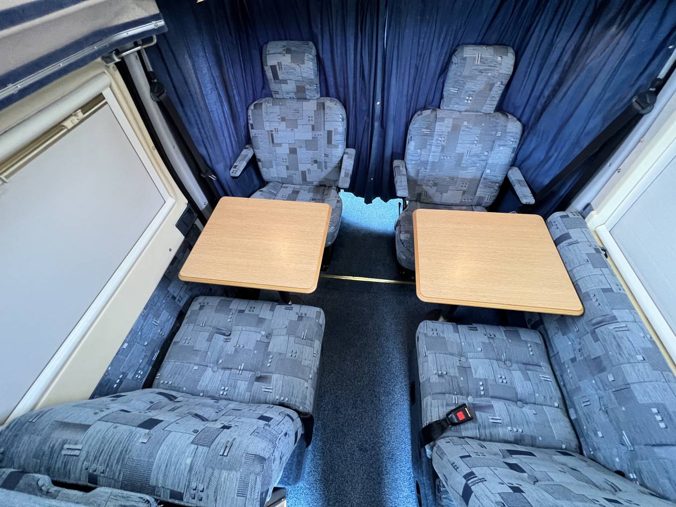 On entering via the side sliding door you come into the lounge area where both front seats swivel round to face the rear belted seats.
