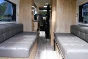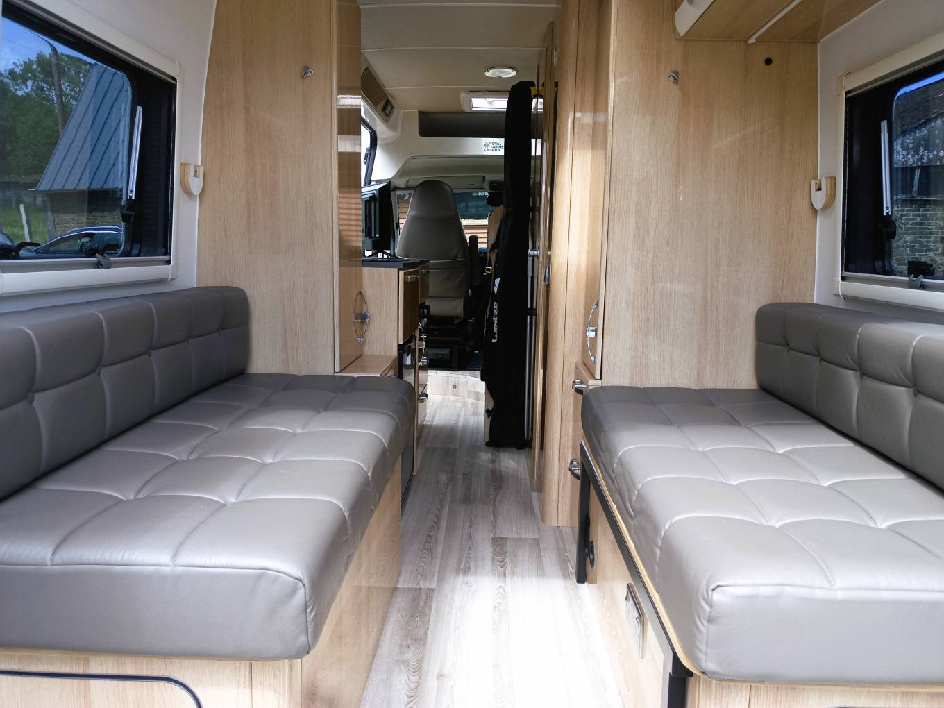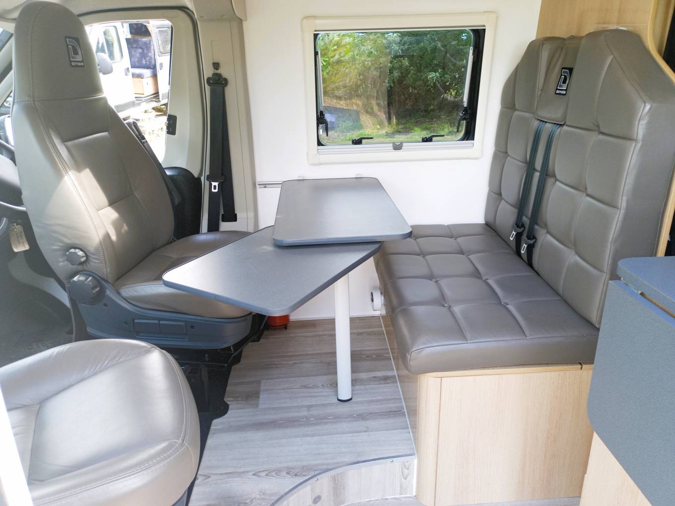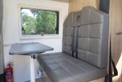 Leatherette upholstery to cab and habitation sections, with swivelling cab seats, a dinette section which seats four in comfort and there is still space for the coveted rear lounge.