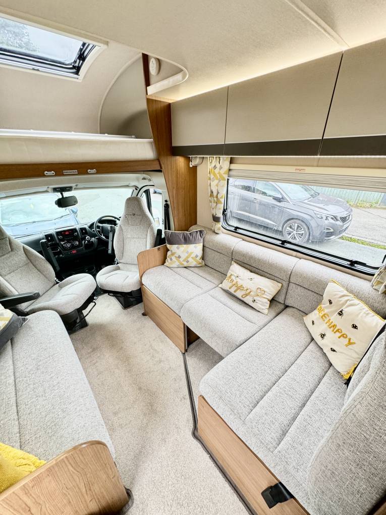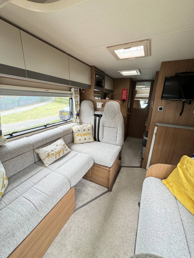 There is a Truma boiler and Ultraheat system controlling heating and water heating, with blinds and fly-screens throughout. This motorhome also comes with Air Suspension, Bike rack, Ladder and roof rails an Air Awning and a Sigma S34 Alarm.