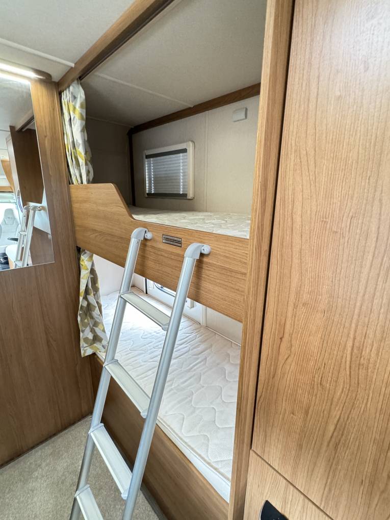are the generous bunk beds, 1.85m x 0.70m, with side window and storage