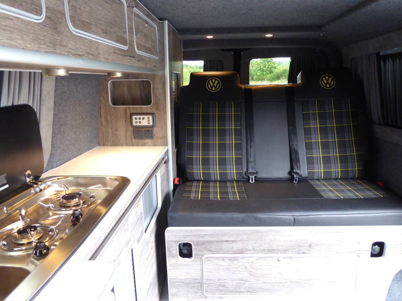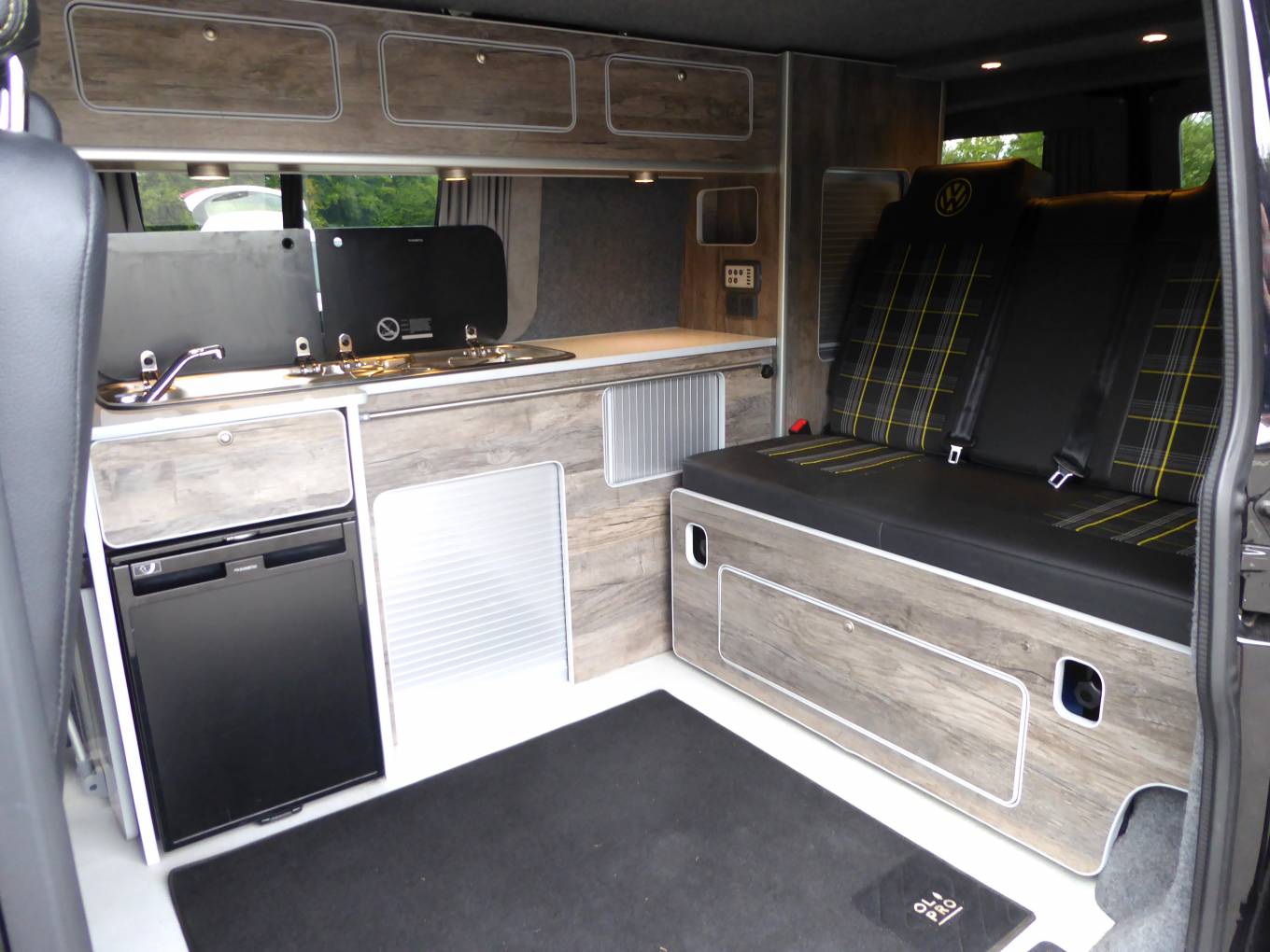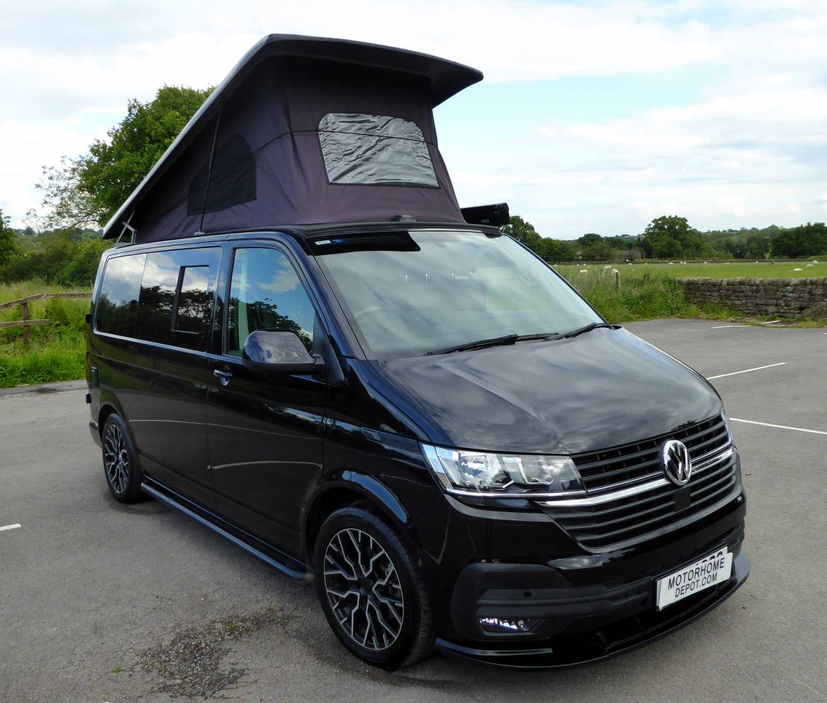 Call with any questions on 01423 609985. This VW Transporter T6.1, T-28 Highline, professional conversion by Big Wave Campers, is a real head turner being impressive in black. Its ideal for families with 5 seatbelts, and this Volkswagen Highline has low miles and is Euro 6 compliant. The base level includes, 5 seatbelts, pop top, bench seat in the cab that swivels, 2 gas burner hob, fridge, and cab air con. It has travelled only 11,000 miles and is up to date for service, with MOT to end April 2026. Additional features include, Velare alloy wheels, multifunction steering wheel, wind out canopy. The upholstery is in good condition and has VW monograms and yellow pattern. Being only 4.90 metres long, it will fit into normal car park spaces and is an ideal campervan or day van for a family and provide a fantastic VW Volkswagen campervan experience. Part exchange and finance options are available and early viewing is recommended, near Otley West Yorkshire. Call 01423 609985, Reference 242948