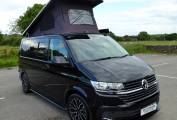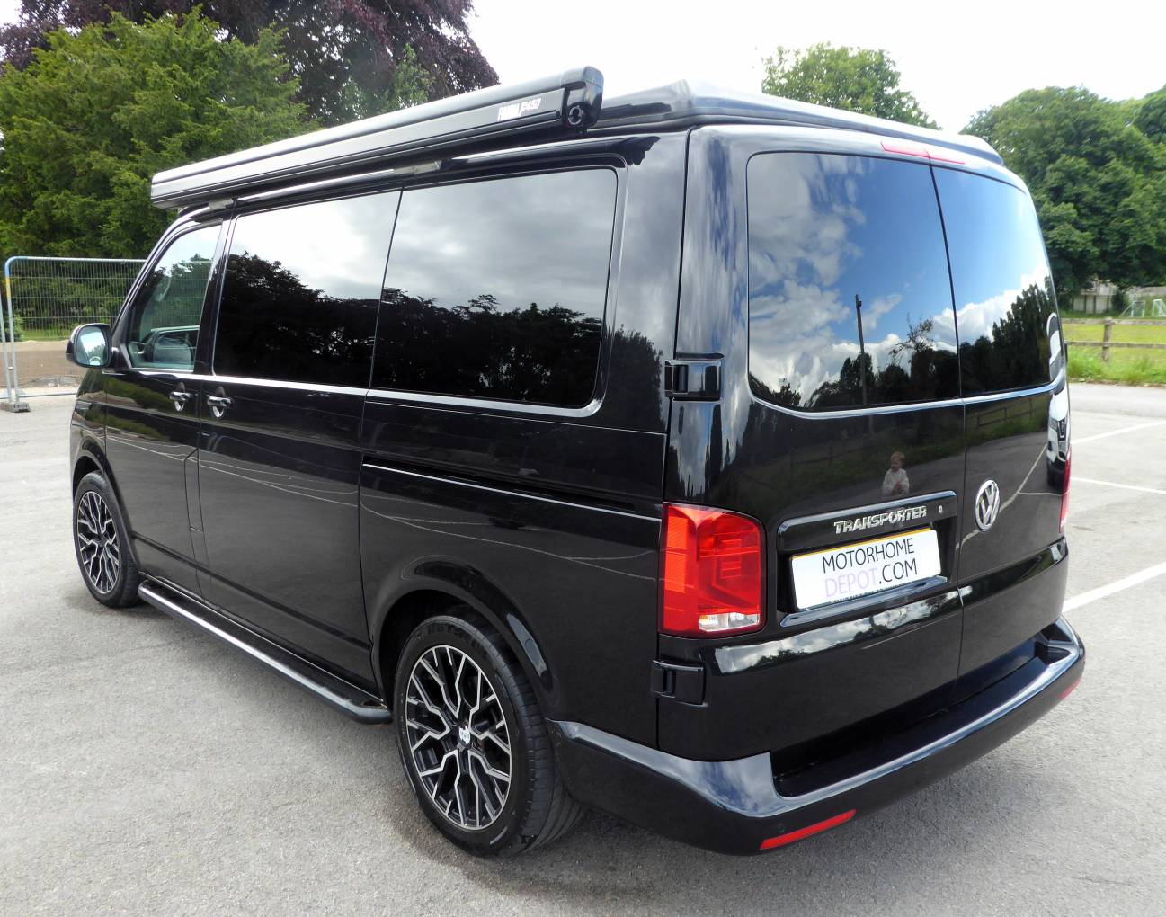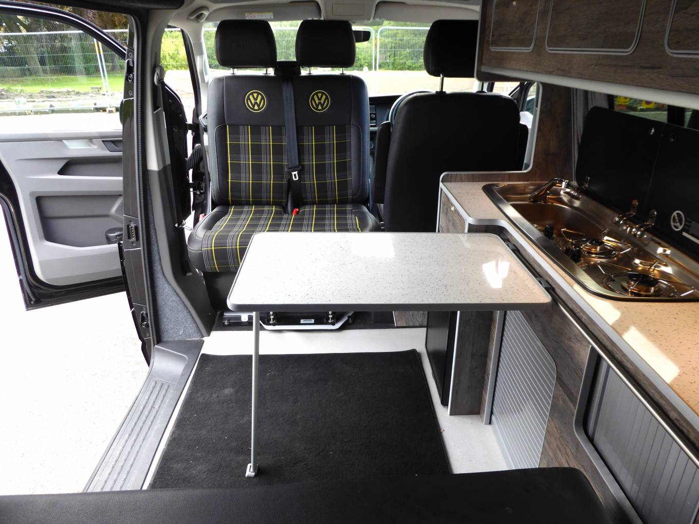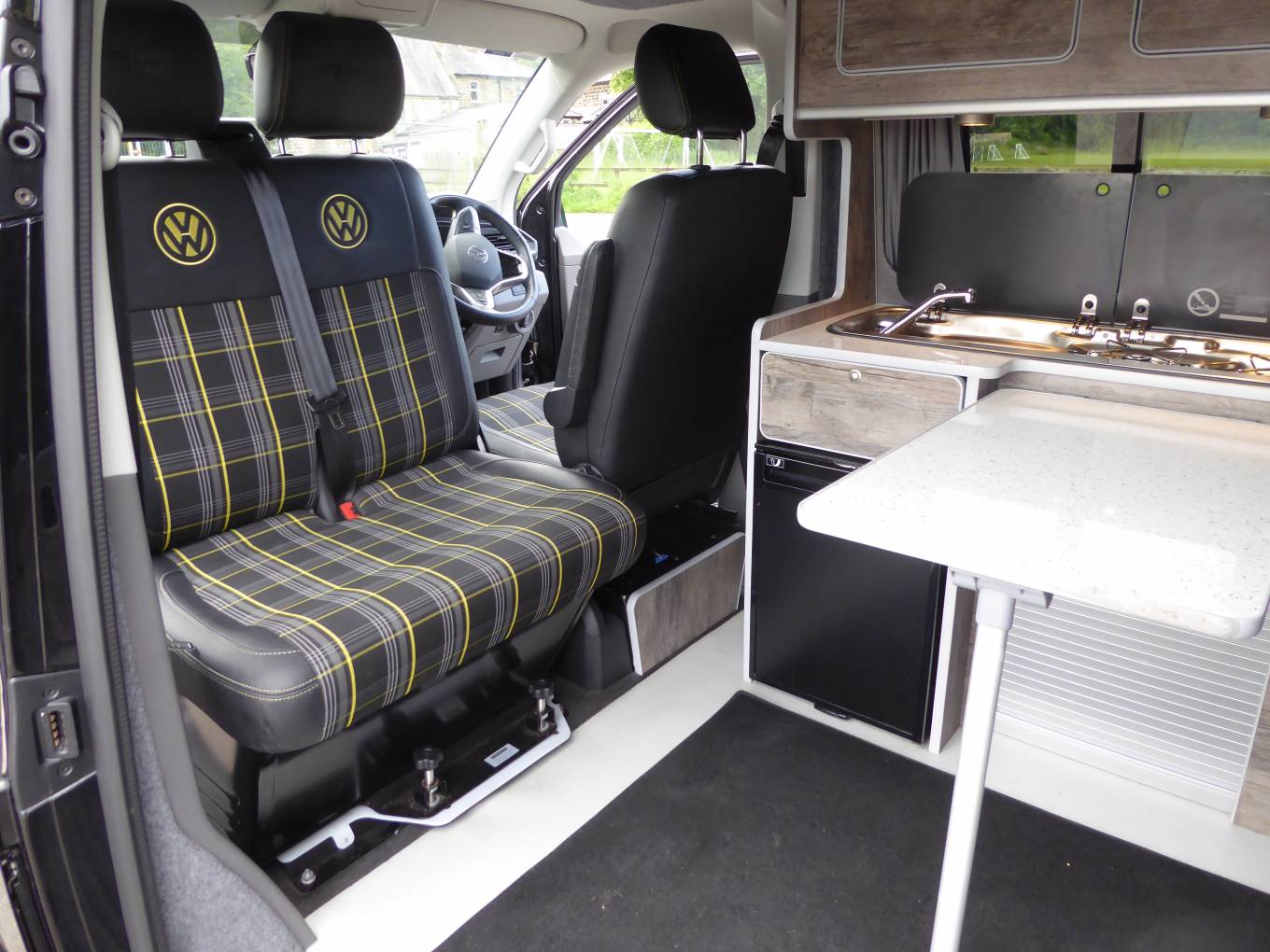 Call with any questions on 01423 609985. This VW Transporter T6.1, T-28 Highline, professional conversion by Big Wave Campers, is a real head turner being impressive in black. Its ideal for families with 5 seatbelts, and this Volkswagen Highline has low miles and is Euro 6 compliant. The base level includes, 5 seatbelts, pop top, bench seat in the cab that swivels, 2 gas burner hob, fridge, and cab air con. It has travelled only 11,000 miles and is up to date for service, with MOT to end April 2026. Additional features include, Velare alloy wheels, multifunction steering wheel, wind out canopy. The upholstery is in good condition and has VW monograms and yellow pattern. Being only 4.90 metres long, it will fit into normal car park spaces and is an ideal campervan or day van for a family and provide a fantastic VW Volkswagen campervan experience. Part exchange and finance options are available and early viewing is recommended, near Otley West Yorkshire. Call 01423 609985, Reference 242948