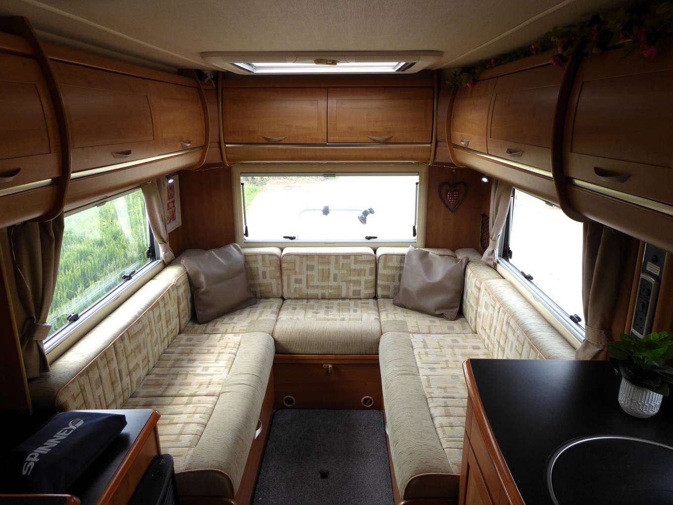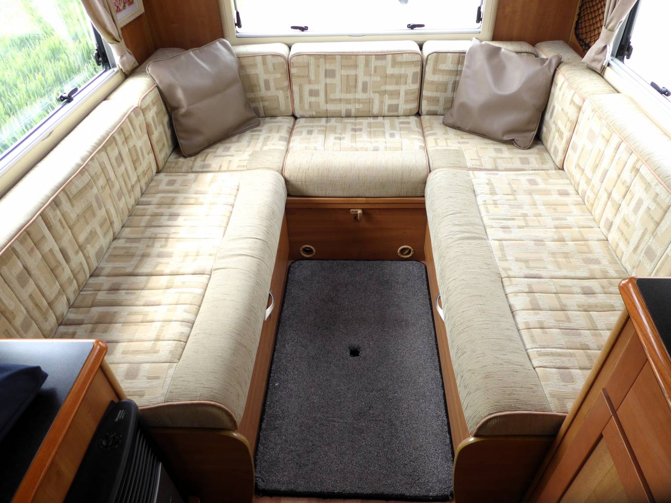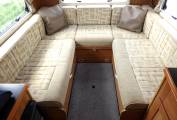 The rear U shape lounge has sofas that can be used as 2 singles or a large double, using the full width of the motorhome and a TV can be used within this area.