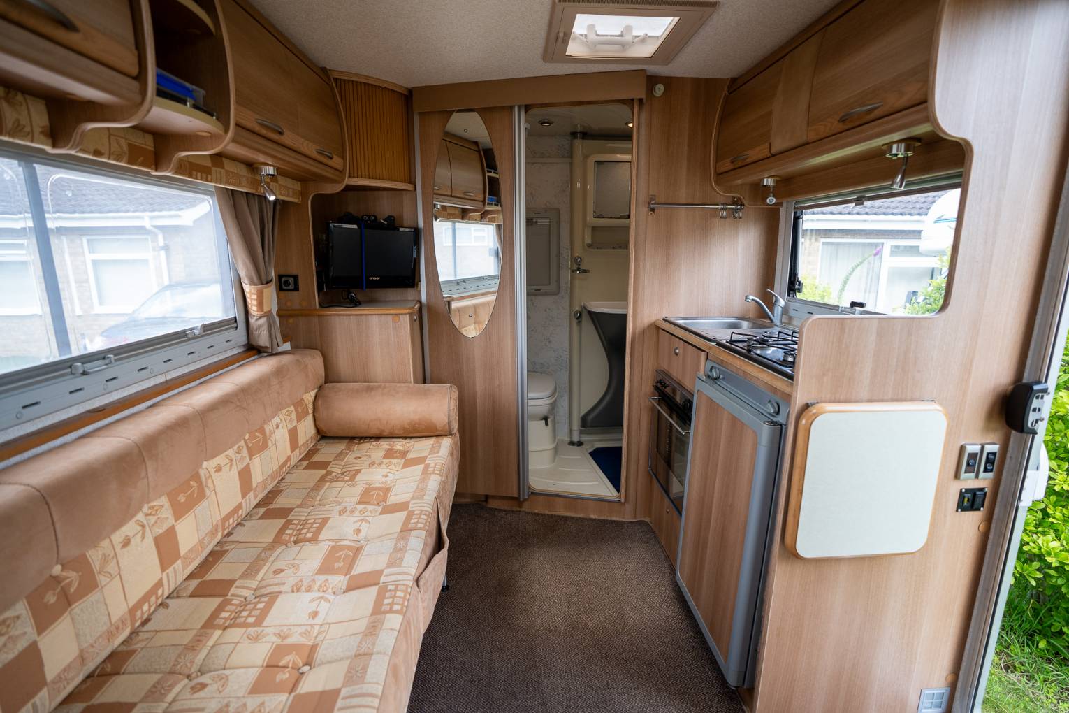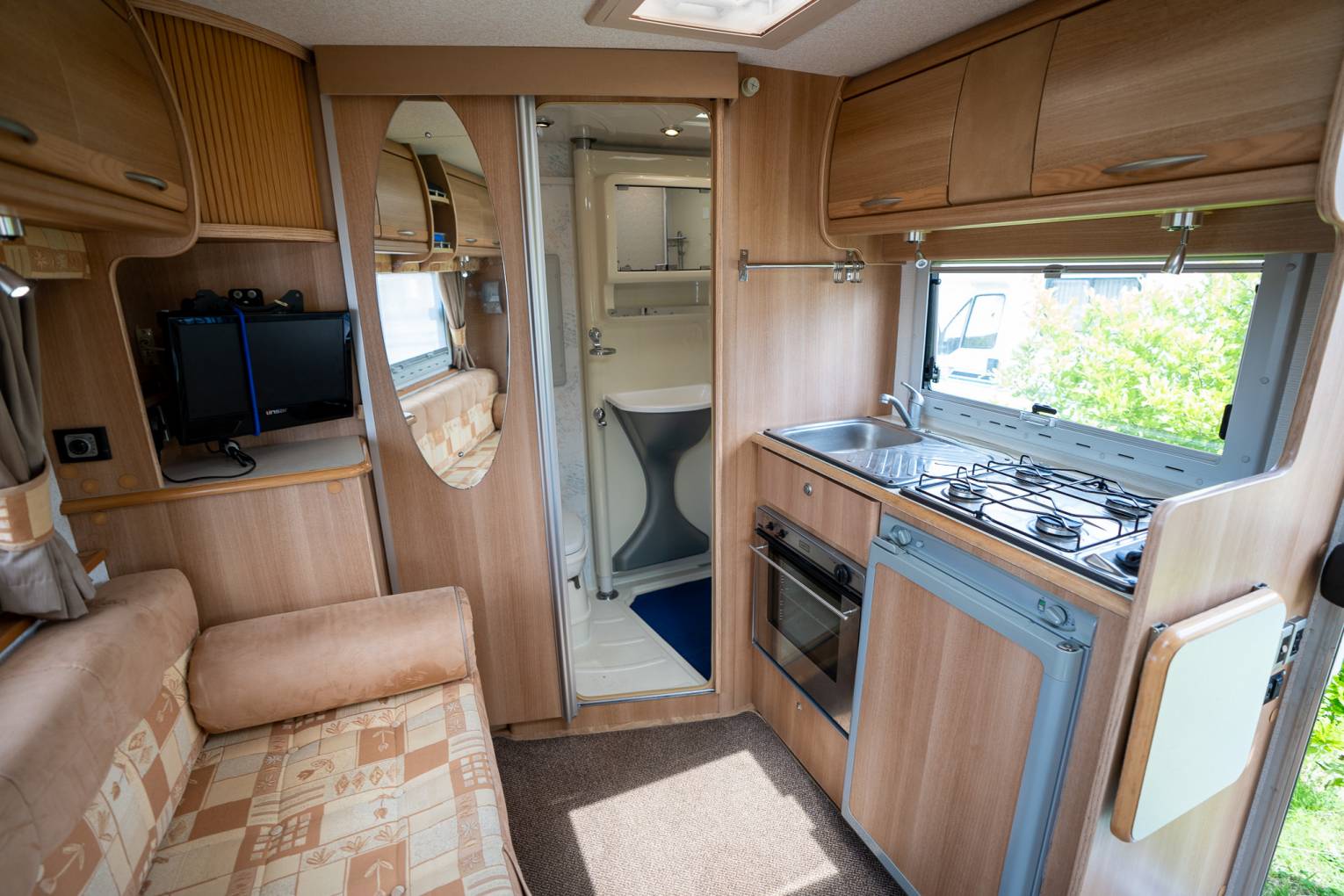 Located near Huntingdon we have this beautiful and compact 5.27m long 2005 AutoCruise Starlight available for sale. It has been really well looked after by a caring owner and comes with an outstanding recent service history for its age. Complete with a recently changed CamBelt, Water Pump and Tyres whilst boasting a (clear) Habitation Check in August, Full Service in April, and a fresh MOT this month. It really is ready to go and take you on those long awaited summer trips. It's huge specification list means you'll never be left wanting on those longer haul adventures. It's 120w solar panel and TV ensures you'll always be fully charged and kept up to date with everything that's going on in the world even whilst you are off-grid. It's comfortable cab area and Dual Reversing Camera, compliments it's compact size, so you can make it into normal parking spots or tuck away into small, discrete camping areas. The warm colours inside and the ample overhead storage lockers throughout means you can take whatever supplies you need on your adventures, whilst giving that fresh and homely vibe synonymous with the Star Series of Motorhome. The Kitchen area is complete with a 3 way fridge, plenty of worktop space, a 4 burner hob and a combi Grill and Oven. The Rear bathroom quickly retracts to utilise the space effectively, making this a spacious shower room/toilet, or mix of both. At the rear of the vehicle we have a spacious external locker, suitable for Hook up Cables, Levellers, Food Supplies, or a few crates of your favourite tipple for those cosy summer nights away.
