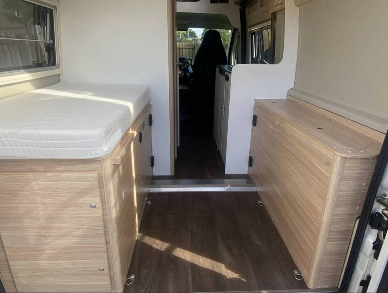 This campervan is in a wonderful condition with the layout comprising from the rear you have an elevated large comfortable transverse double bed
