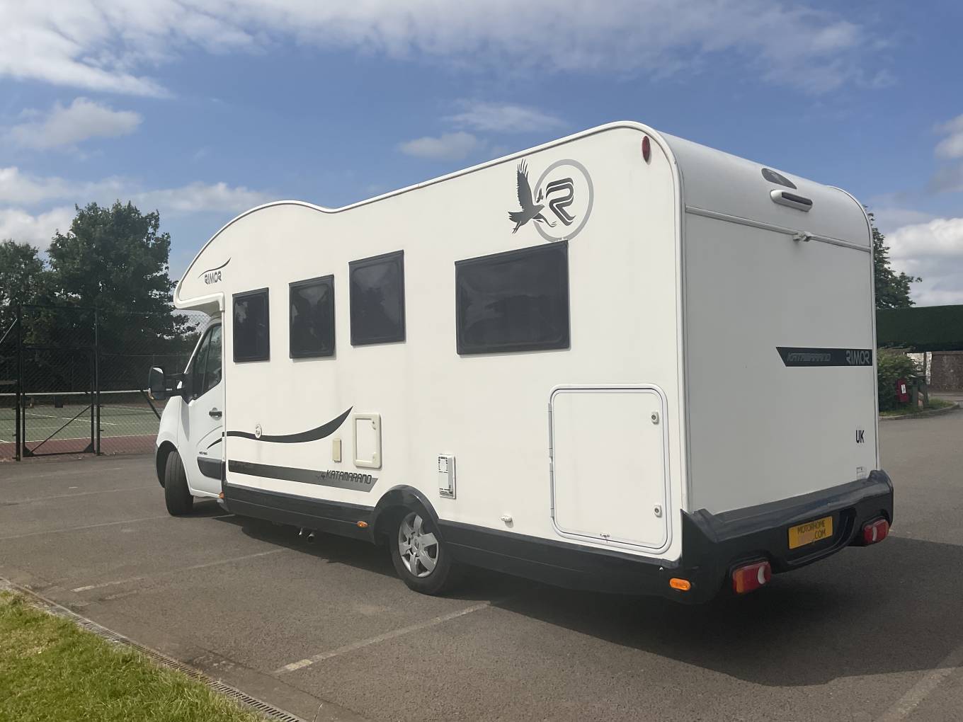 Rimor Katamarano 95p Plus, 5 Berth Motorhome with 2 Fixed Single Beds and Electric Drop Down Bed. This motorhome was first registered July 2014. At the rear is the bedroom with 2 fixed single beds and under this is a good sized garage with plenty of storage. Next to the bedroom is the bathroom area to the left and a separate shower compartmenton the right. In the centre of the van is the kitchen including a double hob, sink and a large fridge with seperate freezer. At the front is the lounge with adjustable table, captains seats and over head there is an Electric Drop Down Double Bed. It comes with 5 Seat Belts, Cab Air Con, Cruise Control, Rear Camera, Blown Air Heating, TV, Canopy Awning, Additional europeon headlights and Eletric Step. It also comes with Alarm. Available for viewing by appointment in Newport.