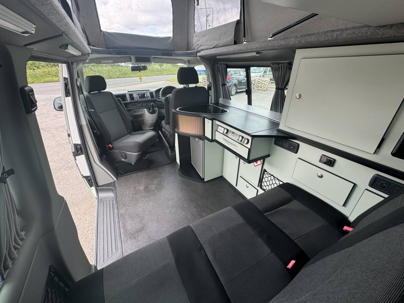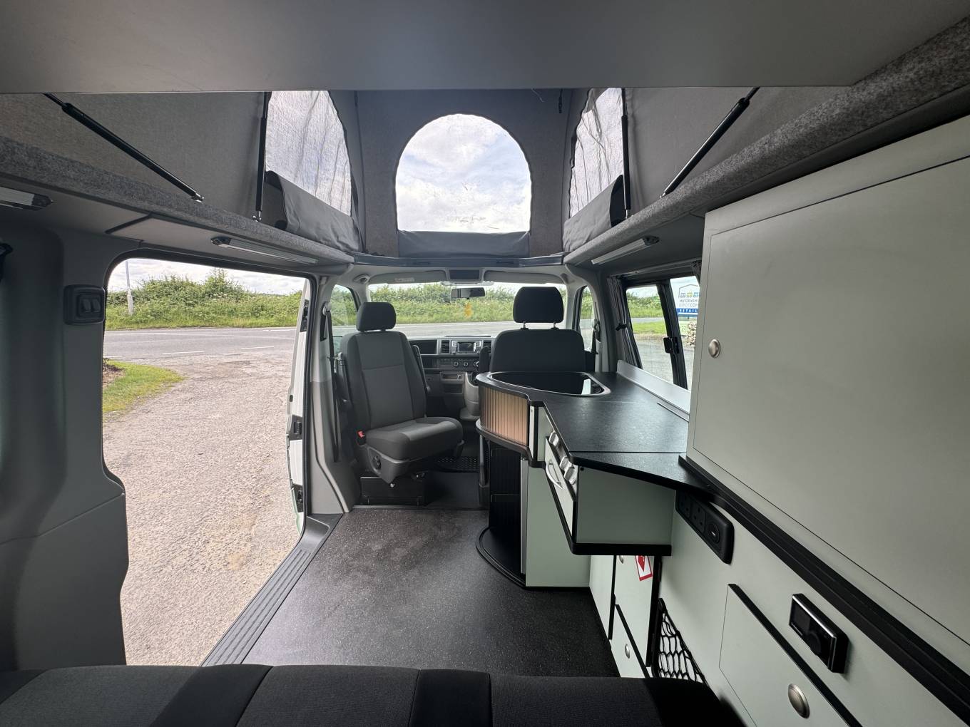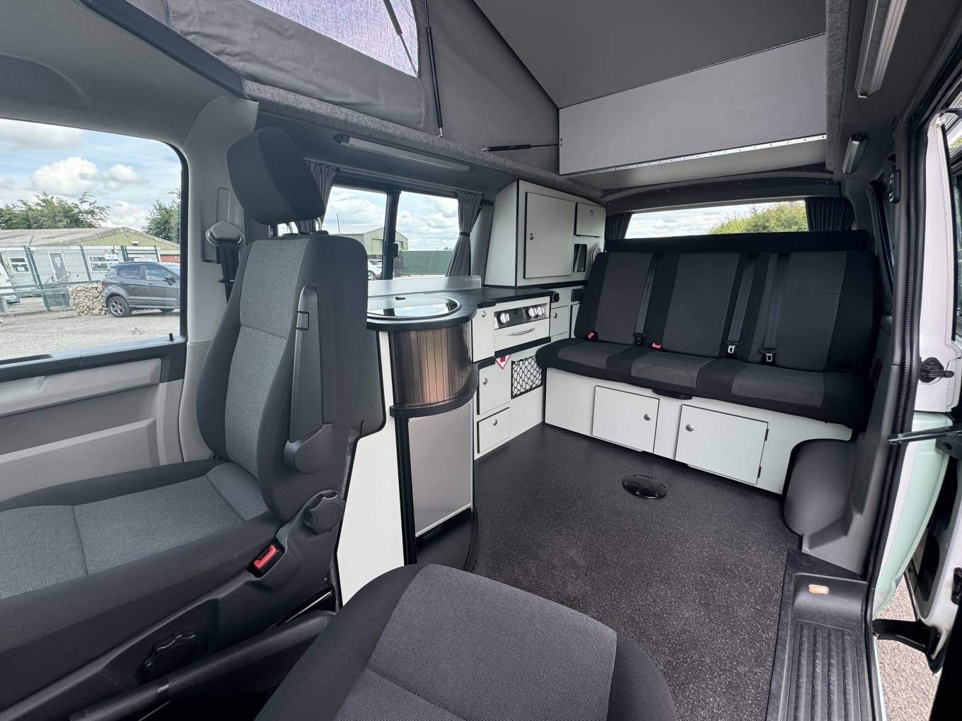 Motorhome Depot Farnsfield welcome this 2019 VW Transporter T30/T6 conversion by Danbury, with only one owner from new. Low mileage of only 29055 miles on the odometer. Inside, the camper van has undergone a thoughtful conversion to provide a comfortable and usable space to enjoy your travels. There are two beds, one a rock and roll foldaway bed, the second a bi-fold bed contained within the Skyline pop top. The kitchenette features a sink and two burner gas stove, a Fridge/Freezer and multiple storage cupboards. Please call to ask any questions or arrange a viewing.