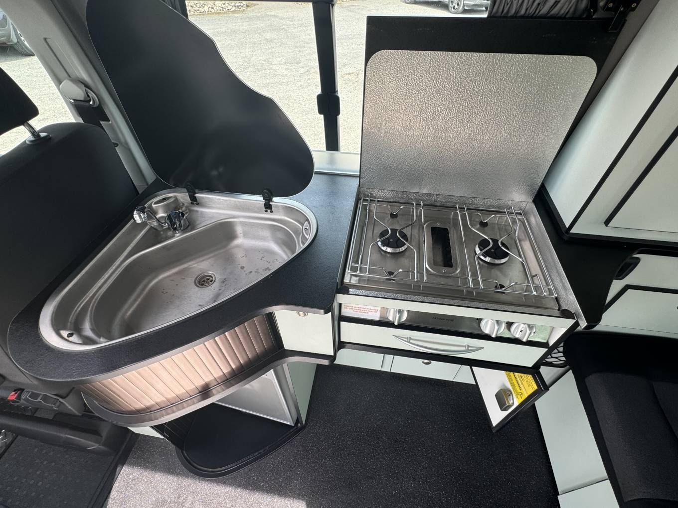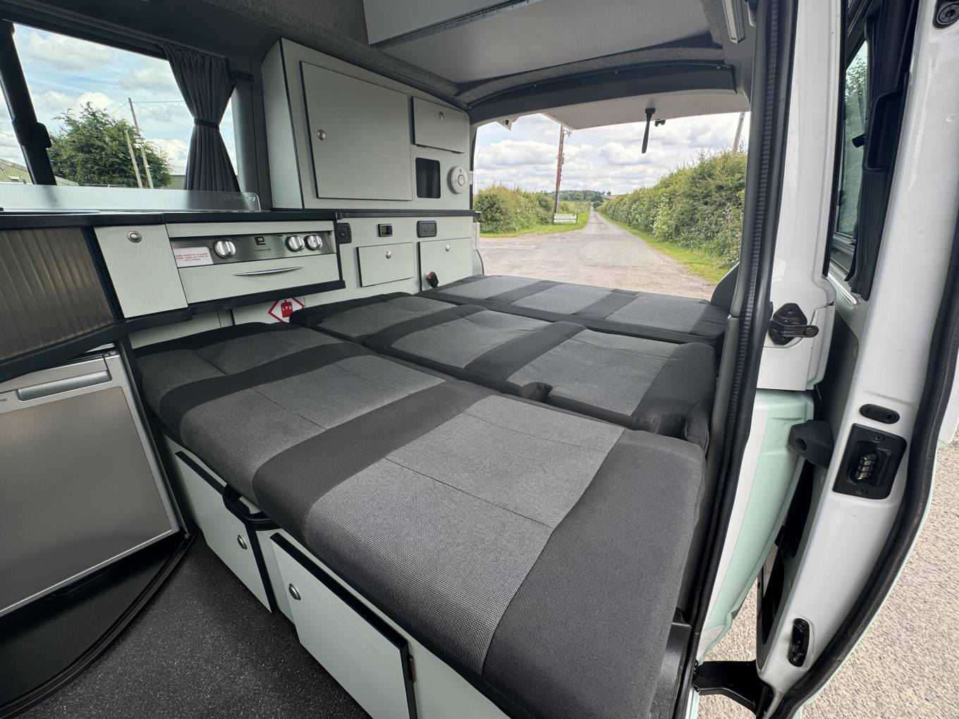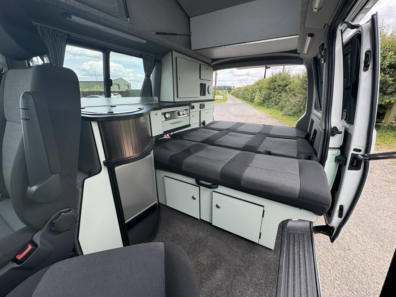 Motorhome Depot Farnsfield welcome this 2019 VW Transporter T30/T6 conversion by Danbury, with only one owner from new. Low mileage of only 29055 miles on the odometer. Inside, the camper van has undergone a thoughtful conversion to provide a comfortable and usable space to enjoy your travels. There are two beds, one a rock and roll foldaway bed, the second a bi-fold bed contained within the Skyline pop top. The kitchenette features a sink and two burner gas stove, a Fridge/Freezer and multiple storage cupboards. Please call to ask any questions or arrange a viewing.