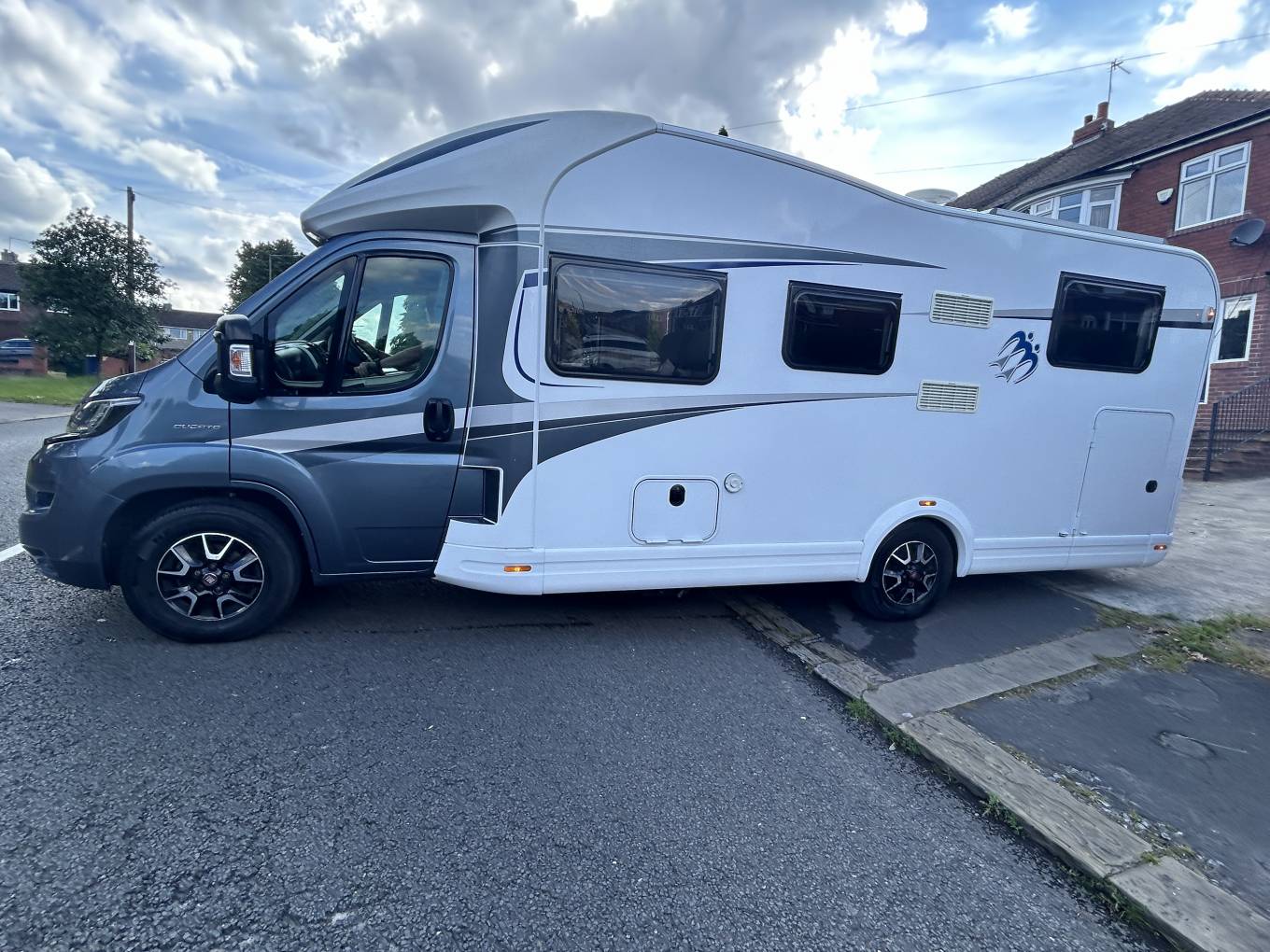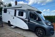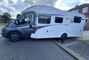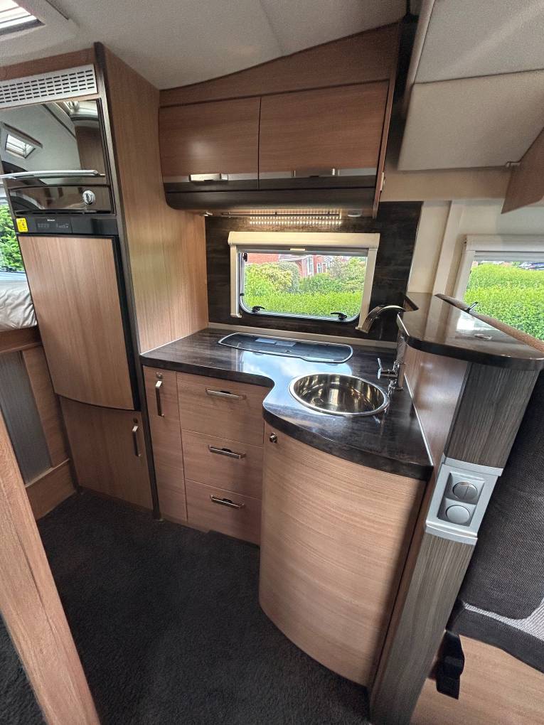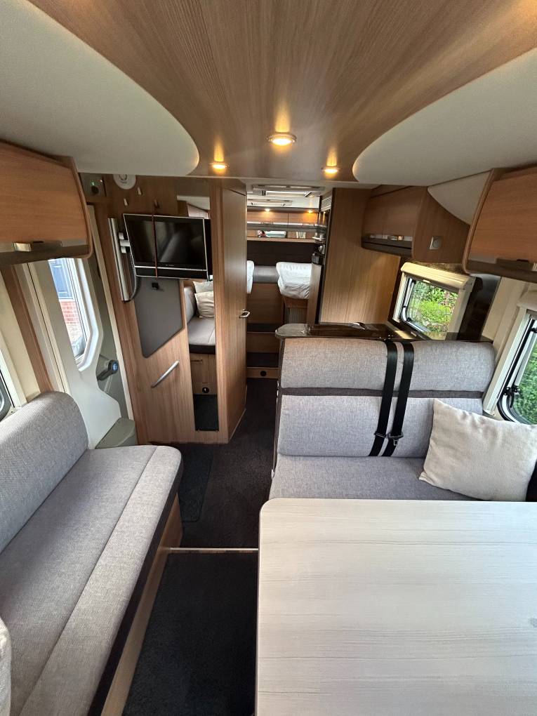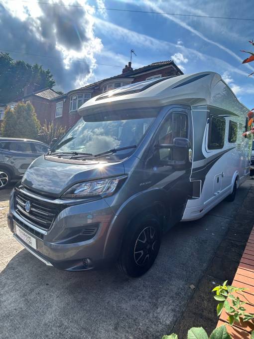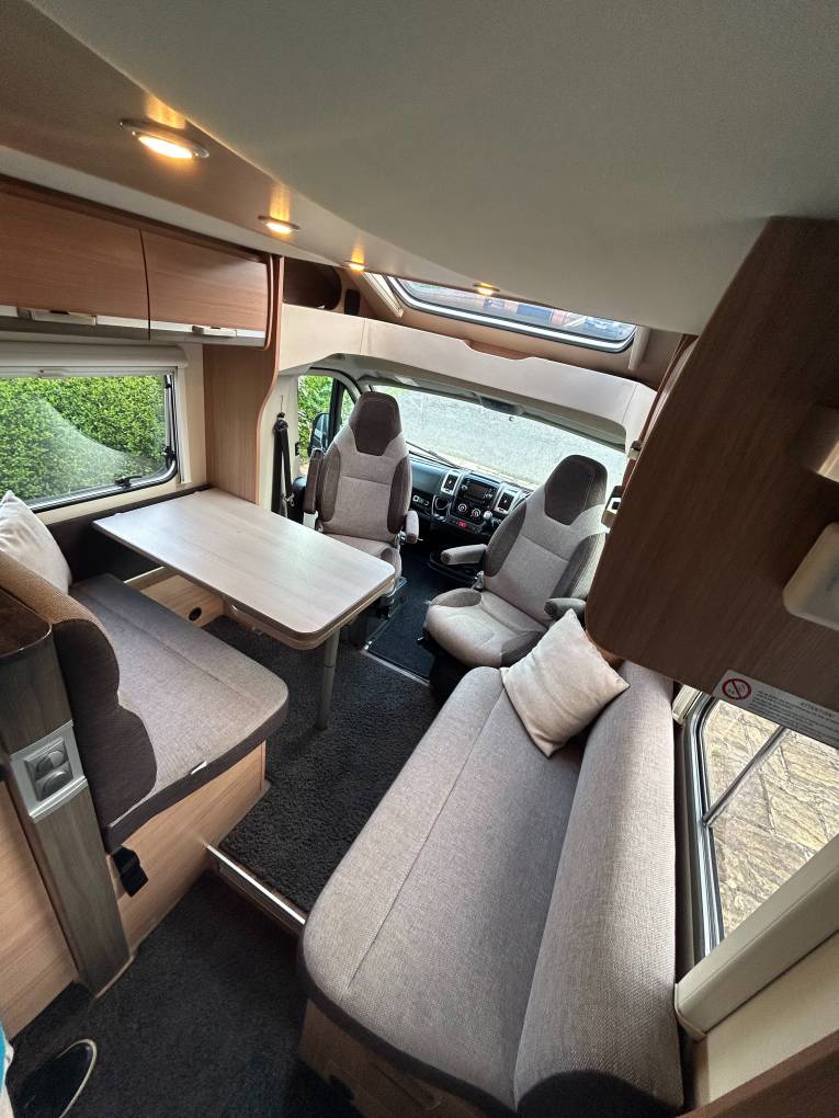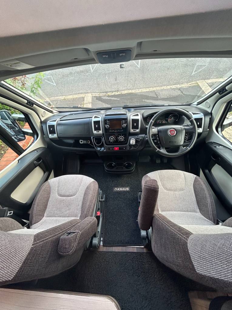 Here we have a Knaus Sky Wave 700 MEG on a Fiat Automatic with just 18284 miles on the clock. This is the perfect motorhome for a family of 4 to have the adventure of a life time, enjoy the drive with the Fiat AUTOMATIC gear box, cruise control, air conditioning, Reverse camera, Both seats turn to the centre to create a large dining area where you can enjoy a family meal or simply relax and enjoy the free time and be entertained with a 12v TV, The table adjusts to suet your needs, there are 2 forward facing seats with seat belts so all the family can travel safely, with the wall units and under seat space there is plenty of storage. All the windows have internal safety locks, blinds and fly nets fitted including the habitation door. Cook up a delight in the fully equipped kitchen, including a 3 gas burner hob, sink and mixer tap, oven/grill, 3 way fridge/freezer to keep everything fresh and ready. The washroom has a Thetford cassette toilet, vanity unit, mirror, plenty of storage, shower, sink and mixer tap. The bedroom has fixed twin beds, again plenty of storage in the wall cupboards and wardrobes that are below the bed. This motorhome comes with a I-net Truma heating system and Solar panel, Enjoy the outside with the wind out canopy and access the large garage from either door, full service history and previous Habitations checks. You will need C1 on your drivers license to drive this motorhome. Overall this motorhome is in fantastic condition and can be viewed in Barnsley by appointment only.