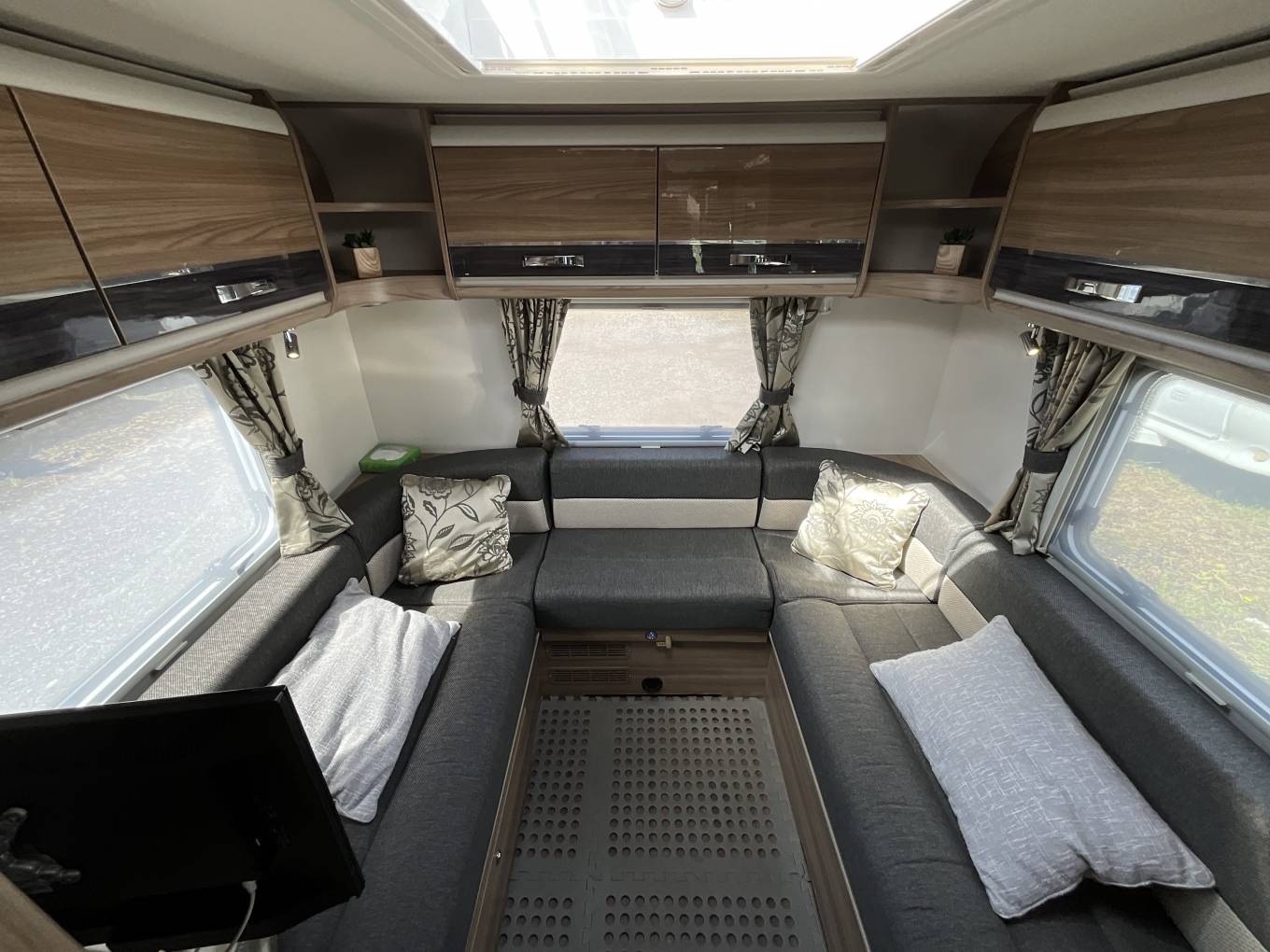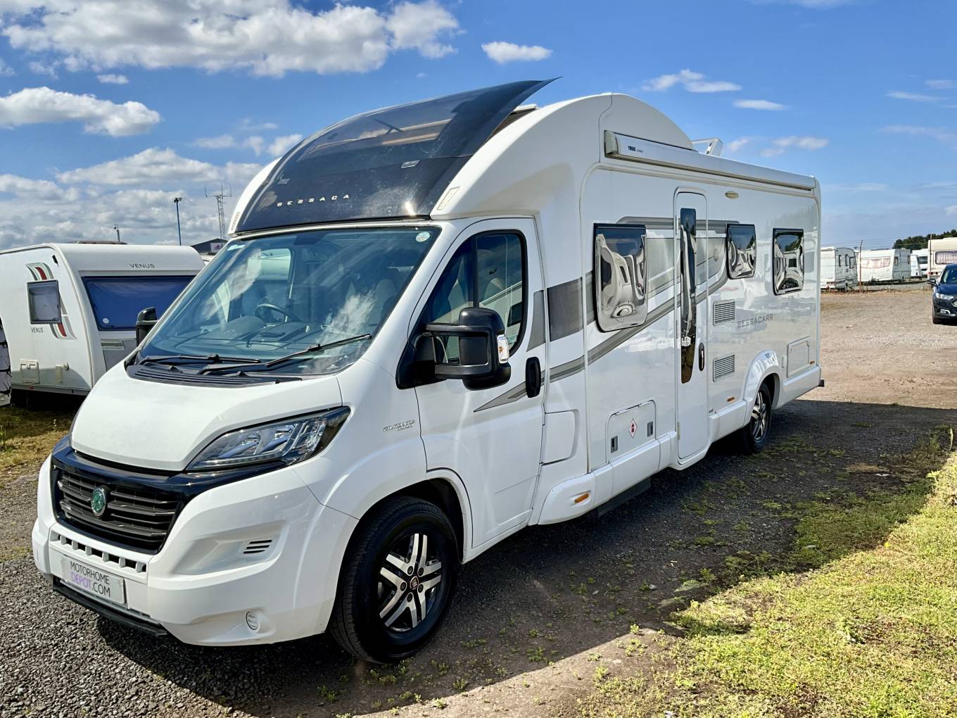 A spacious layout featuring the ever intuitive electronic drop down bed, this Bessacarr comes with a great spec, including solar panel, wind out awning and more.