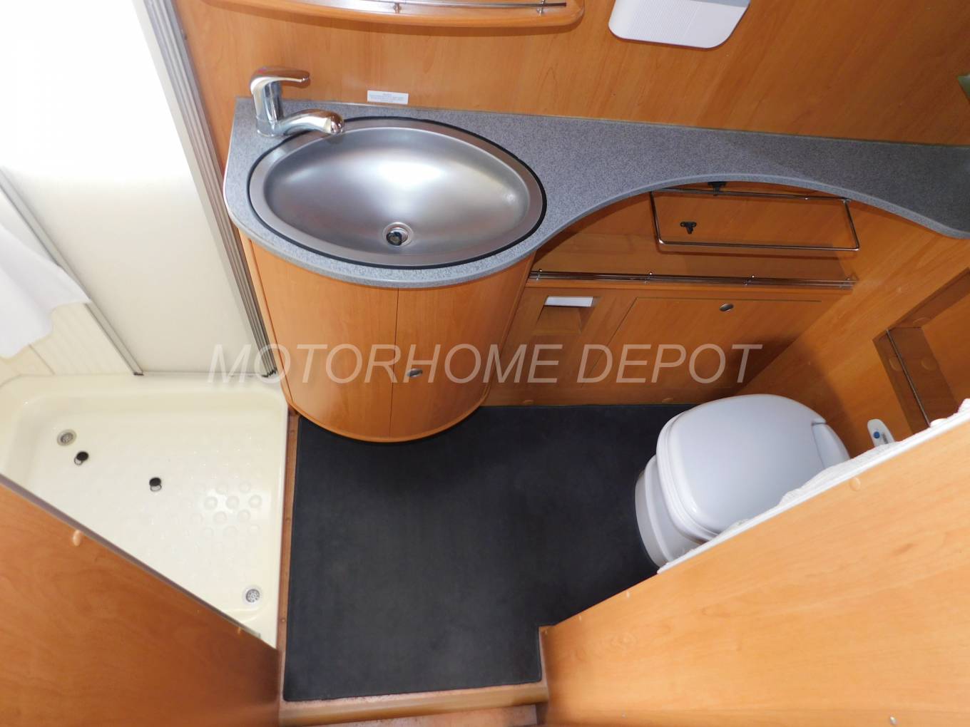 shower handset. Built-in washbasin with chrome mixer tap, Thetford cassette