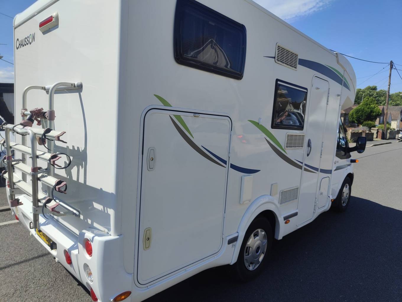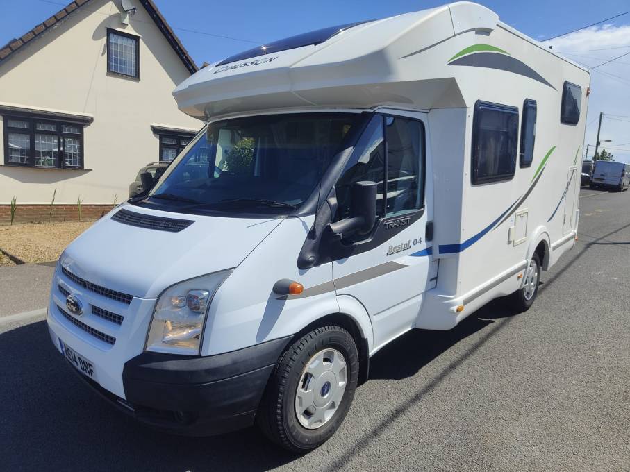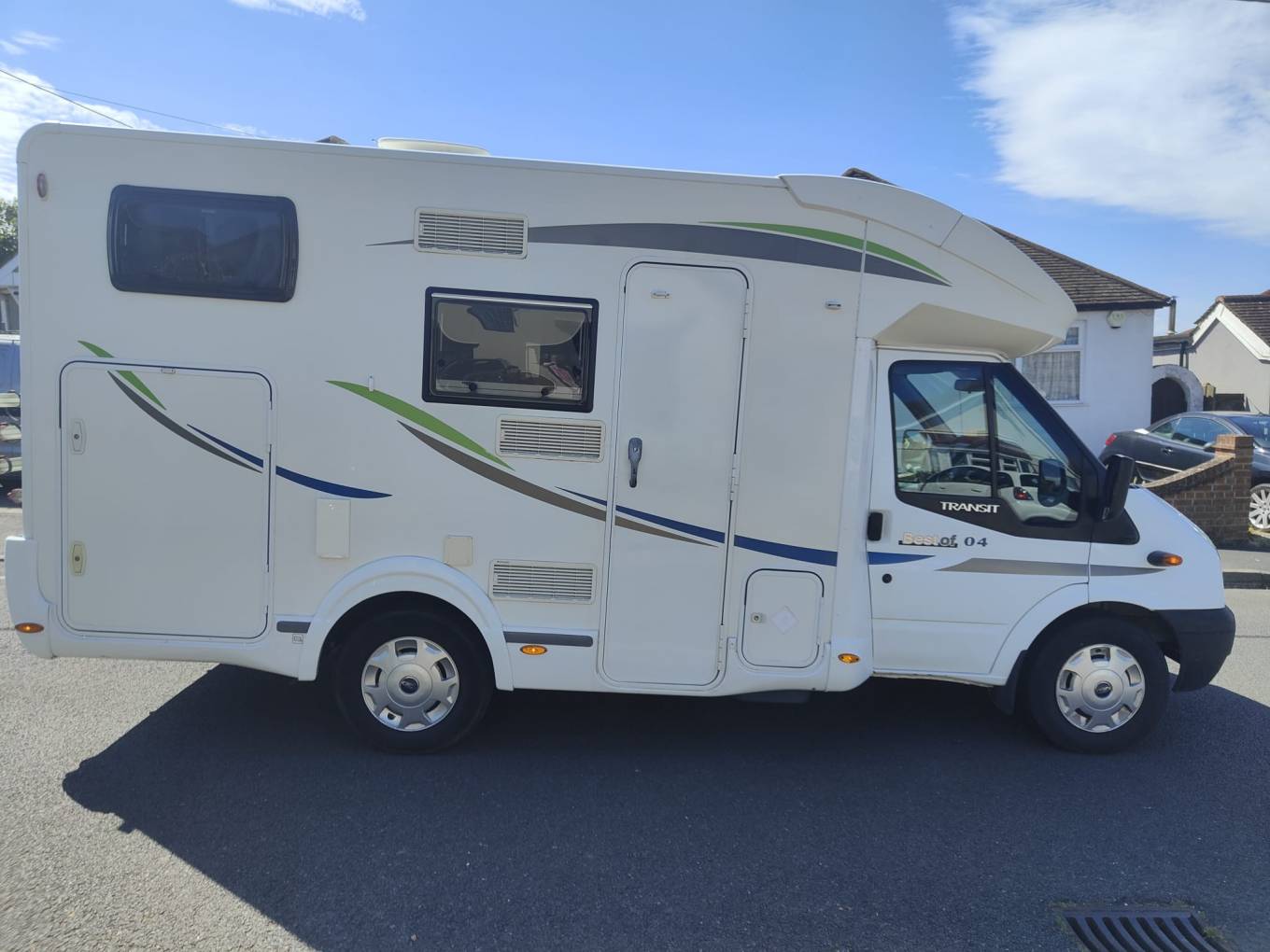 This is a great example of Chaussons Best of 04 coachbuilt motorhome. This 5.6 metre, sub 3500kgs van features a large transverse bed to the rear with garage underneath, centre bathroom and kitchen and spacious seating area to the front that utilises the two rotating Captains seats. Based on the outstanding Ford Transit cab, this 2.2 derivative has the 6 speed manual gearbox and cab aircon as standard. Big enough to spend time in yet small enough to use. Extras include tv aerial, tv and cycle rack. To include a new MOT. Based in Kent and more pictures available.