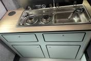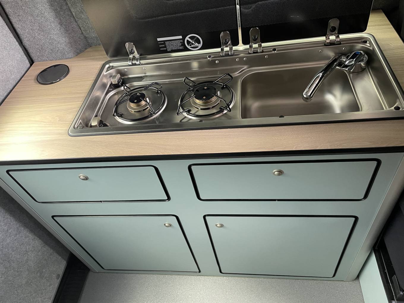 This is a great camper van for couples as it has twin single beds enabling easy access to the rear of the van where there is a Thetford cassette w/c and a kitchen/storage area.