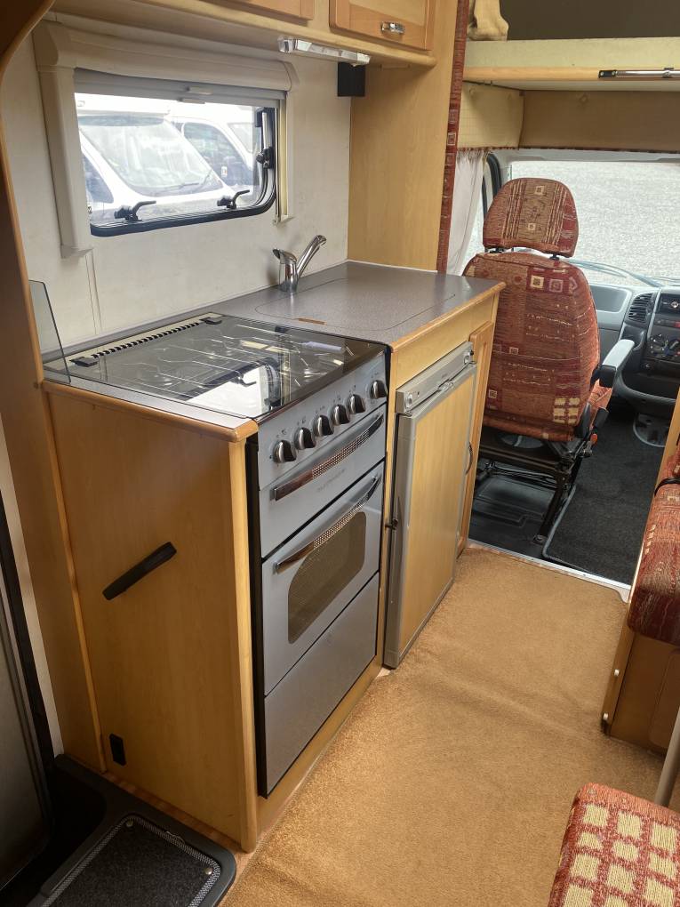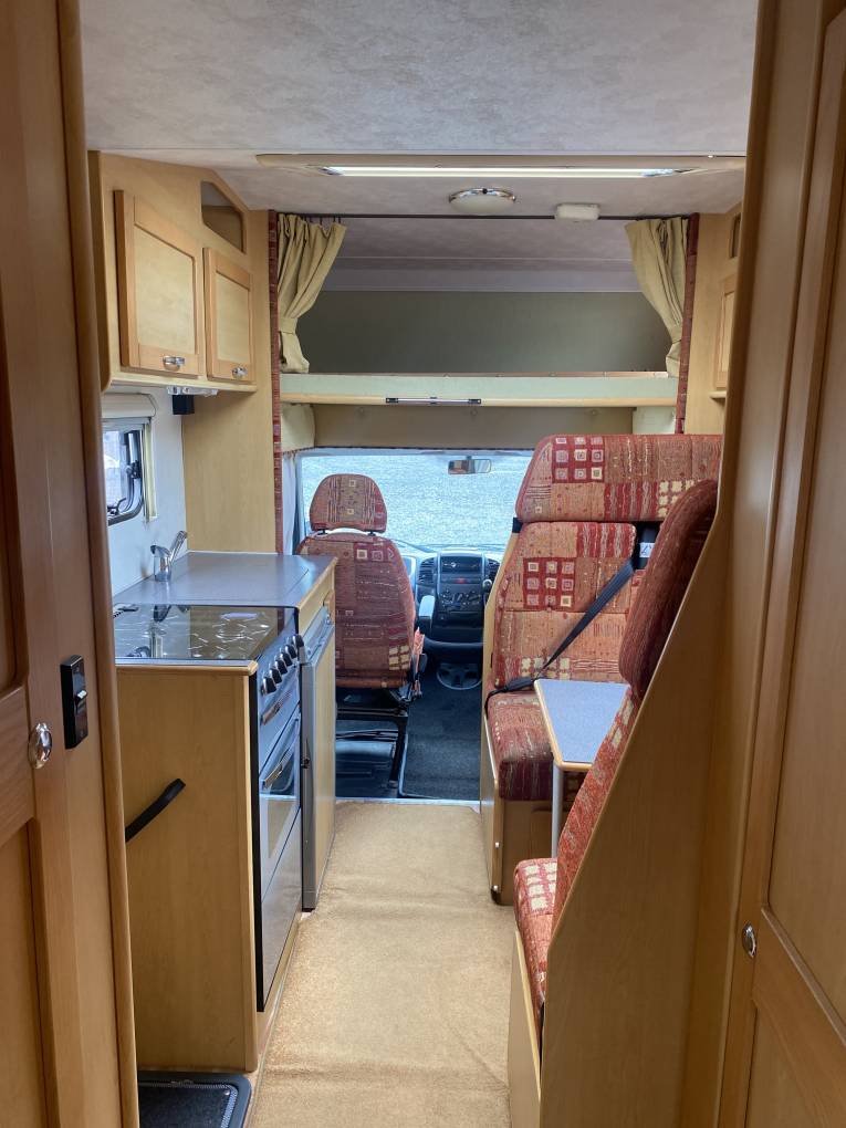 The motorhome comes with an awning, TV aerial and a Fiamma door lock. The motorhome has a MAM weight of 3500kg so it can be driven on a standard UK driving licence. This motorhome is based on the reliable Peugeot chassis that has a 2.2 litre diesel engine. The motorhome has a length of 7.2 metres which gives you plenty of usable space inside, and with a width of 2.2 metres giving this motorhome a very easy drive and manoeuvring even in the tightest of roads and parking spaces.
