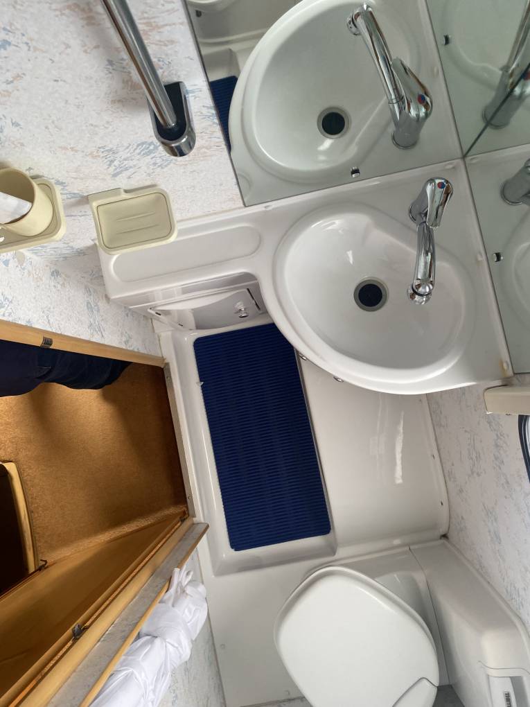 The layout is to the front of the motorhome you have a dinette which can seat four people comfortably. This dinette also gives you the second bed of the three available. Across from the dinette you have a well equipped kitchen which comes with an oven and grill, 4 gas hobs, fridge freezer, large sink basin and plenty of worktop and preparation area. At the front of the motorhome you have a large and gracious over cab bed. At the very rear of this motorhome, you have the spacious and welcoming U-shaped lounge. You also have windows on every wall giving you lovely views of your holiday destination, as well as letting in plenty of natural light making the motorhome feel even bigger. This U-shaped lounge will also pull out easily to create a great double bedroom area. As you move through the motorhome you get plenty of storage throughout in the form of plenty over-head lockers and you also get a big wardrobe which is rare in a lot of motorhomes. Across from the wardrobe you also have a good-sized bathroom with toilet and separate shower area.