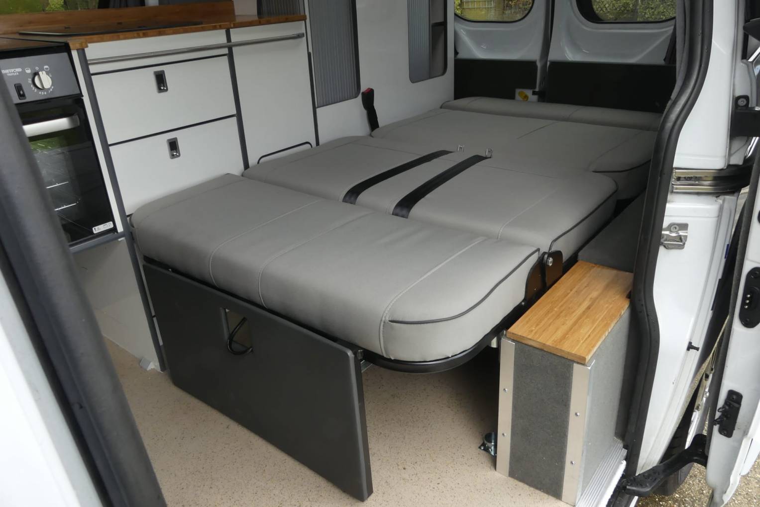 - Freshwater (40L) and wastewater (15L) tanks (unusual to have a waste tank on a vehicle of this size)
