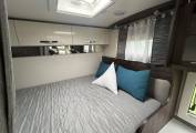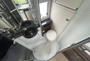 Layout - The end bedroom space boasts the fixed double transverse bed with surrounding storage units that sit above the large garage space and you have nicely stored away stairs to help you on to the bed as well as a large internal space for storage behind the fold away stairs. The washroom is next and is a nice compact one with everything you need to refresh and recharge after a day of adventure, you have the shower cubicle with the toilet, washbasin and vanity mirror. Across from the bathroom and next to the habitation door is the kitchen area and here you have everything you need to cook up a hearty meal for any occasion including, modern 3 way fridge with freezer space, 2x gas hobs, 1x electric plate, oven and grill combi, mixer tap and sink unit.