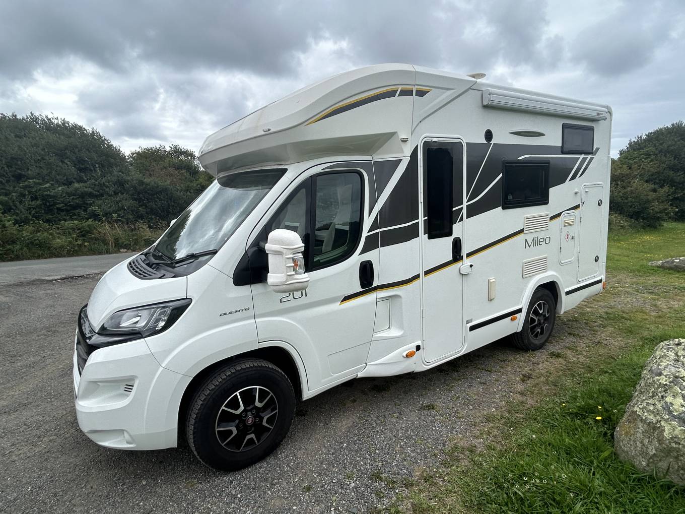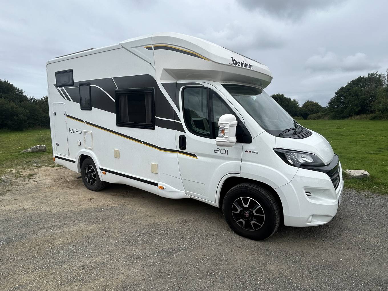 Motorhome Depot Cornwall presents this 2019 Benimar Mileo 201. Which is a 2 berth 4 belt motorhome that is driven on the 6 speed manual transmission, can be driven on a standard license, is built on the 2.3 litre diesel engine and the reliable Fiat chassis. This Benimar also comes with brand new decals on the outside and help this motorhome really stand out from the crowd!