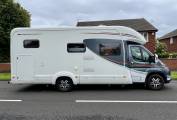 Fit and finish are to a a high standard throughout and equipment levels are high, including awning, towbar, solar panel, external shower, external BBQ point, WiFi under subscription. Gas bottles are also included in the sale.