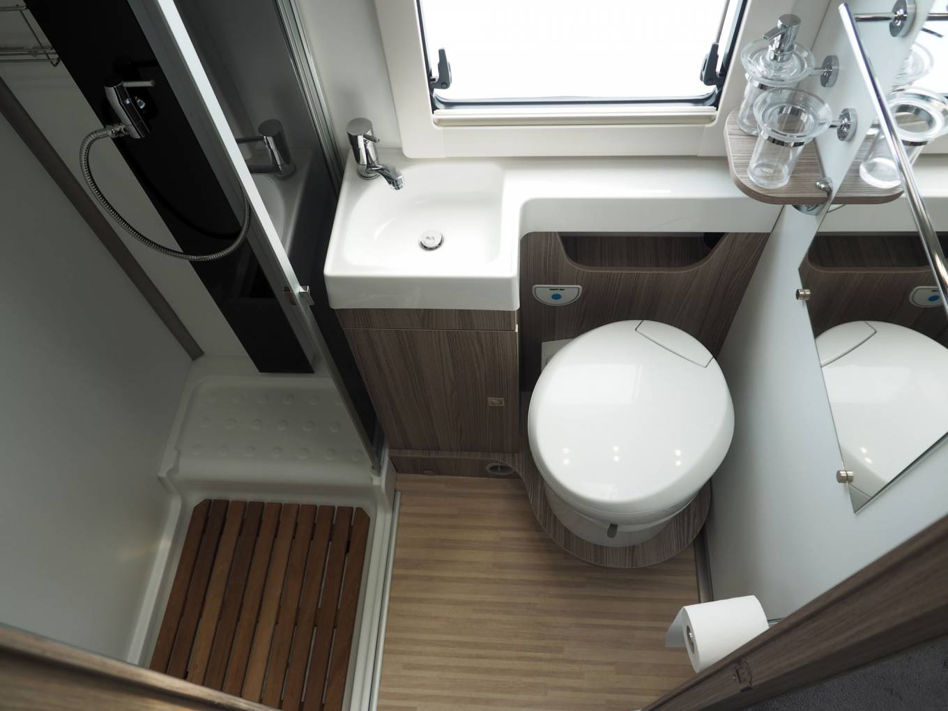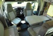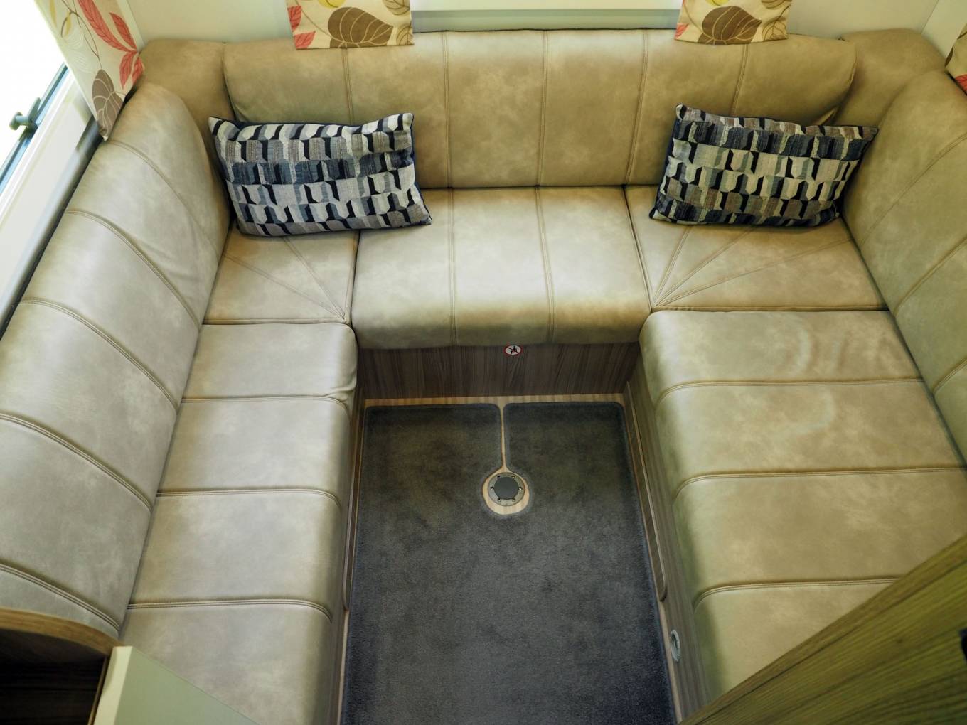 Both double beds are of good size and lower electrically, the rear bed to a lower height than the forward one. The forward dinette has a side mounted table with swivel extension for easy use, while the rear dinette has a table mount in the floor.